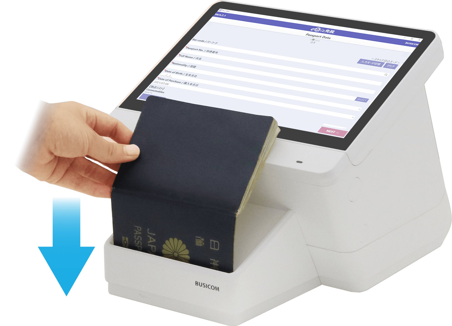 免税販売にも対応!スマートに一体化するパスポートリーダーユニットの外付けが可能(別売)