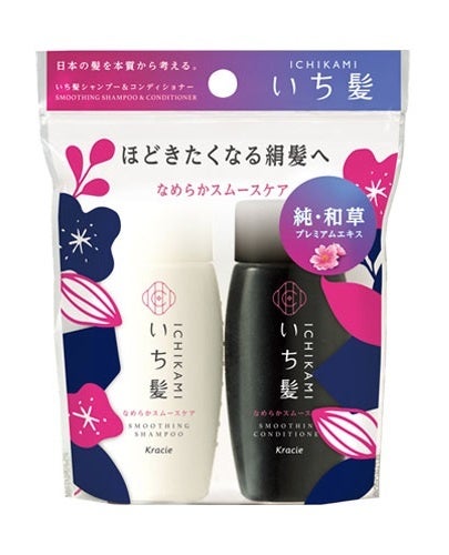 日本の髪研究から生まれた、補修&予防する「予防美髪」ケアの「いち髪」。なめらかスムースケアラインは、絡まりやゴワつきがちな髪も指通りなめらかに導きます。携帯に便利なポーチ入り。ミニボトルなので連泊での使用にちょうどよいサイズです。