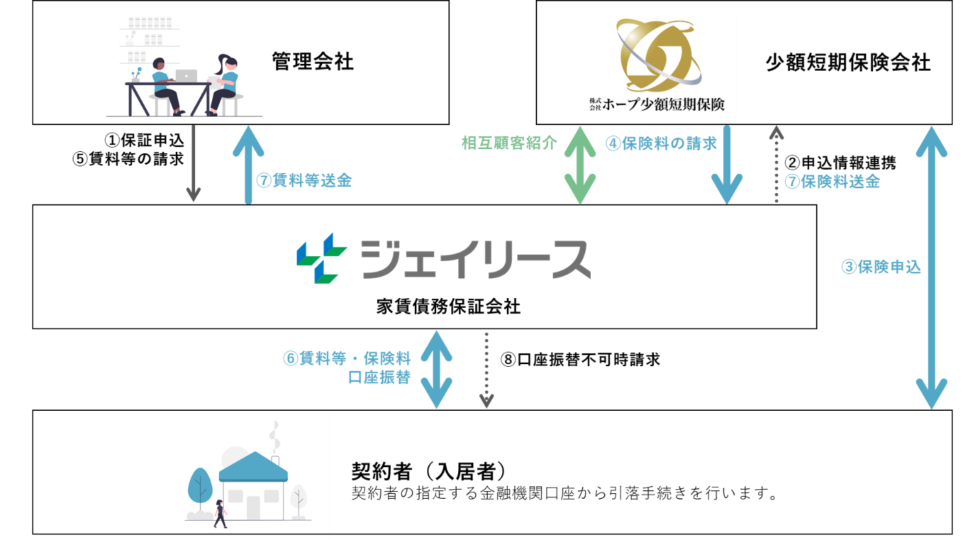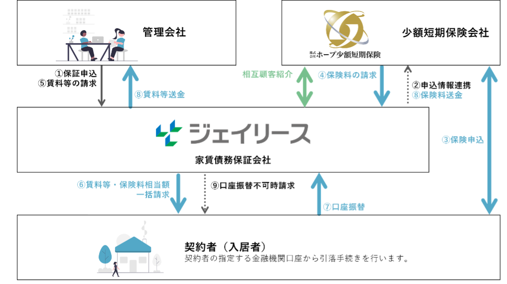不動産 DX を推進する株式会社アンビション DX ホールディングス(東証マザーズ上場、証券コード「3300」、本社:東京都渋谷区、代表取締役社長 清水 剛、以下「当社」)の、インシュアテックを推進する当社の子会社、株式会社ホープ少額短期保険(本社:東京都渋谷区、代表取締役社長 福本 良平)は、ジェイリース株式会社(東証一部上場、証券コード「7187」、本社:東京都新宿区、代表取締役社長 中島 拓、以下「ジェイリース」)と業務提携し、賃貸住宅の家財保険商品保険料の「収納代行及び保証スキーム」を2022年春頃のリリースに向け開発を進めております。この度、リリースに先立ち2022年1月より相互に顧客紹介をする運びになりましたのでお知らせいたします。