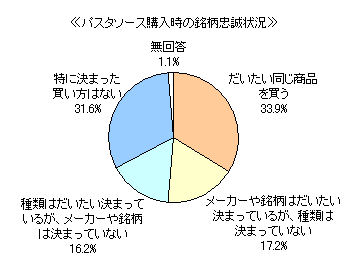 ■パスタソースは「だいたい同じ商品を買う」が3割強、「メーカーや銘柄はだいたい決まっているが種類は決まっていない」「種類はだいたい決まっているが、メーカーや銘柄は決まっていない」が各2割弱