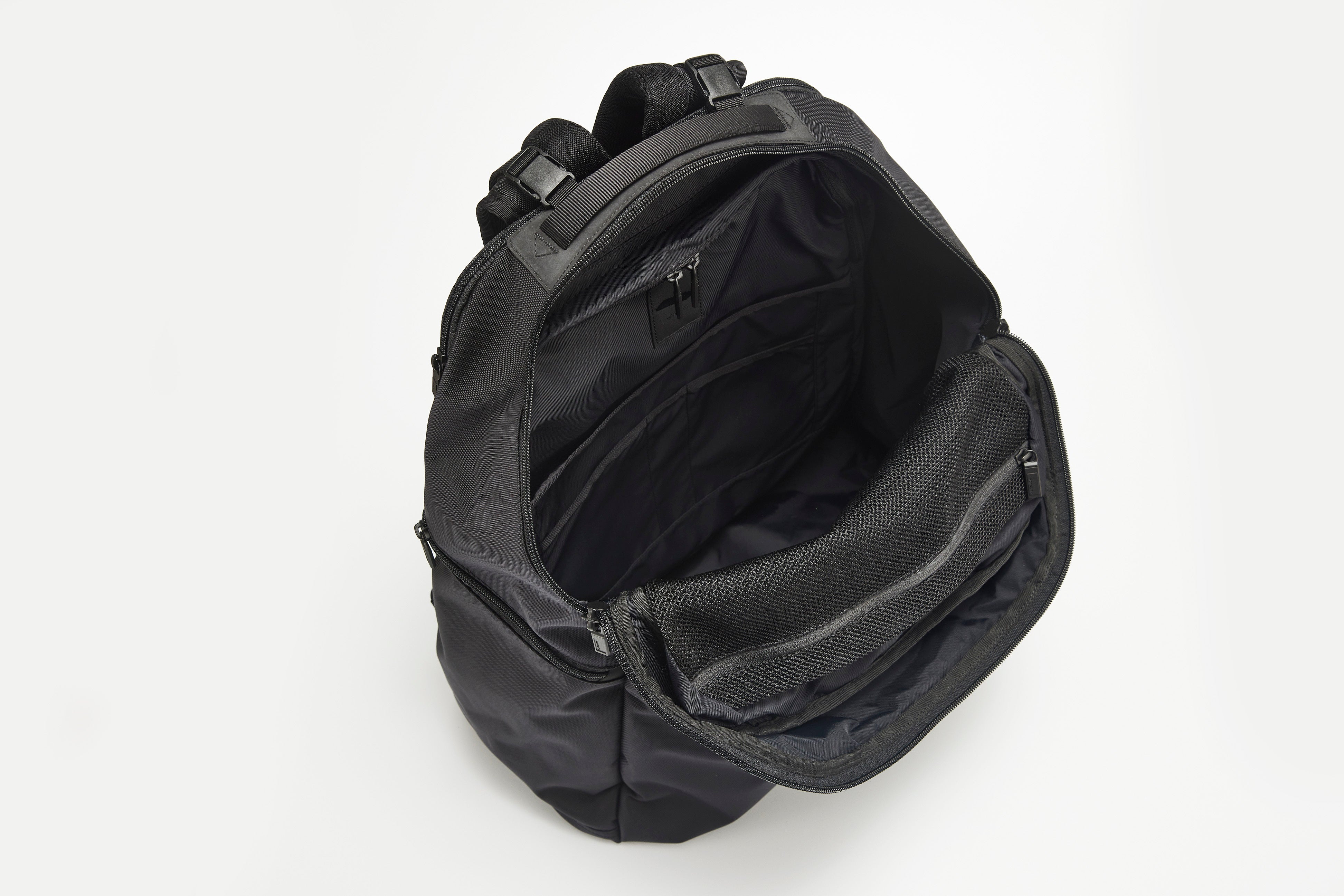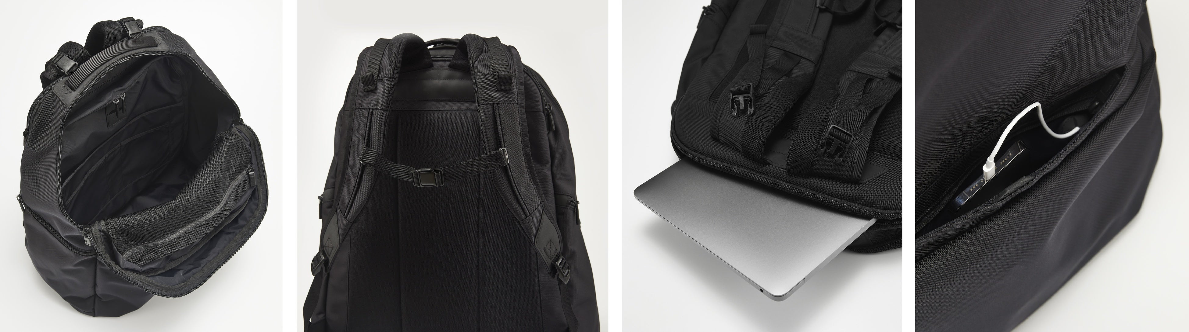 背面にはラップトップPCへのダイレクトアクセスが可能なポケットは配置し、ビジネスやトラベル、レジャーなどで様々な機材やギアを多く快適に持ち運ぶことができます。また一般的な機内持ち込みサイズを準拠しているため、飛行機移動にも対応しています。