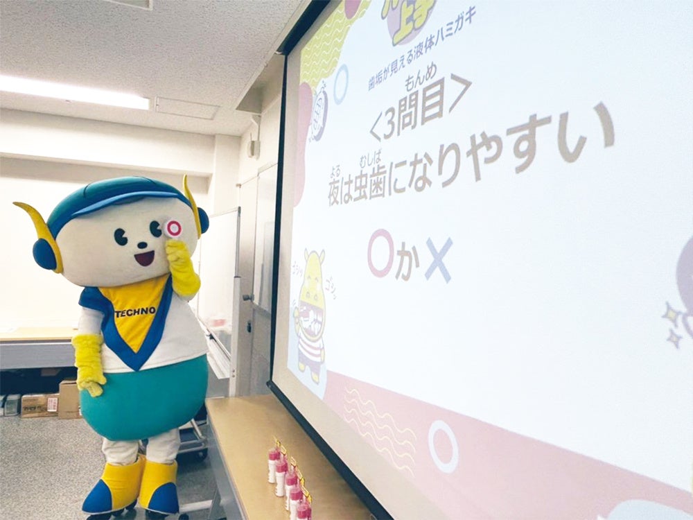 イベントでは、こどもたちが好きな「ジュース」に入っている砂糖の量やハミガキにまつわる〇×クイズを通して、ハミガキや虫歯予防について知っていただきました。