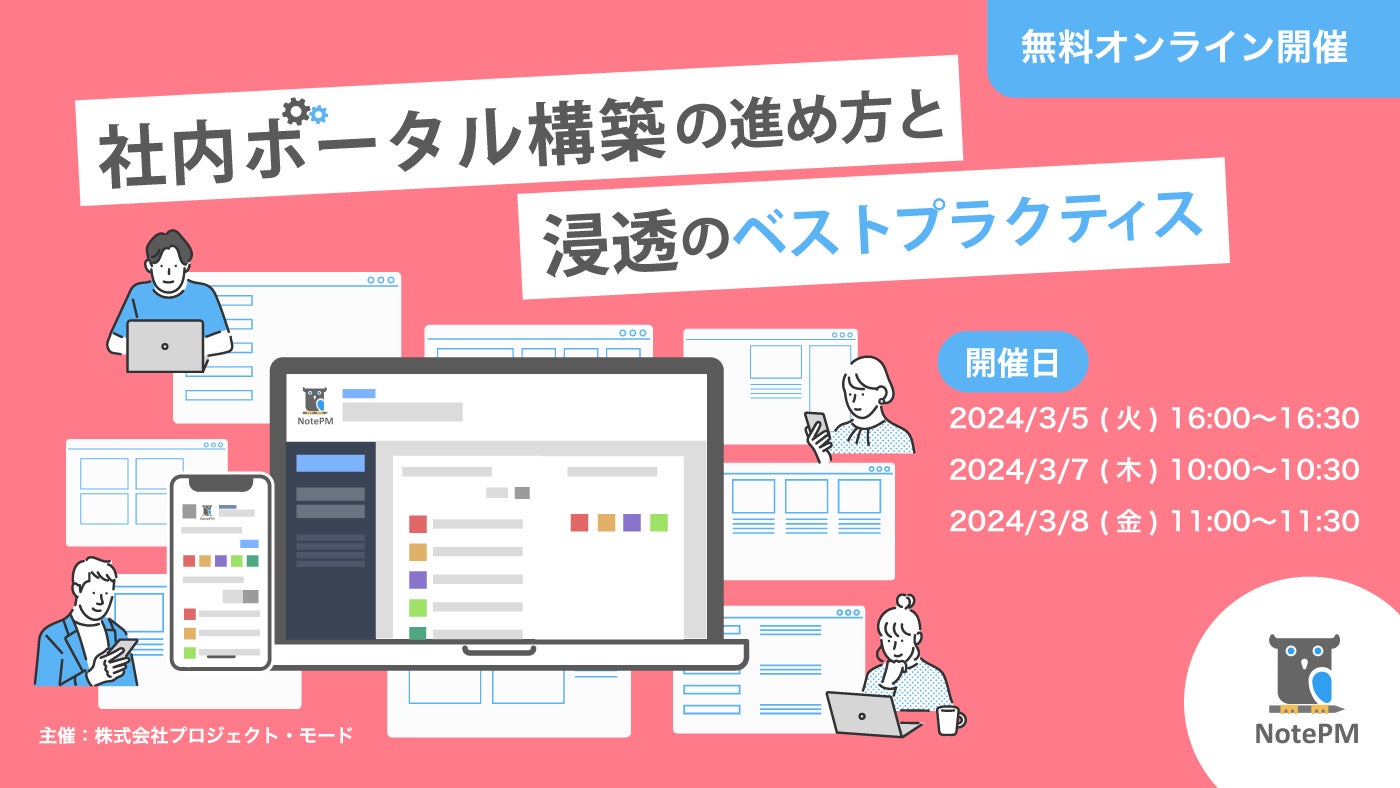 株式会社プロジェクト・モードが提供するナレッジマネジメントSaaS「NotePM ( https://notepm.jp )」は、オンラインセミナー『社内ポータル構築の進め方と浸透のベストプラクティス』を開催いたします。