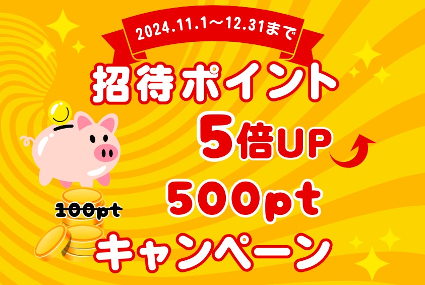 1ユーザー招待につき、獲得できるポイントが5倍にアップしています。
