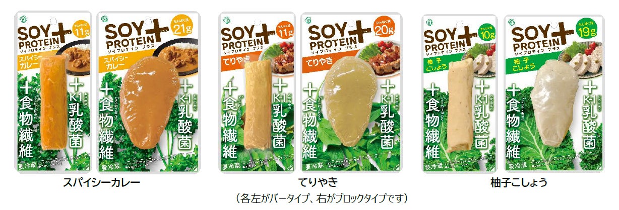 SOY PROTEIN+ スパイシーカレー (バータイプ/ブロックタイプ) SOY PROTEIN+ てりやき (バータイプ/ブロックタイプ) SOY PROTEIN+ 柚子こしょう (バータイプ/ブロックタイプ) |