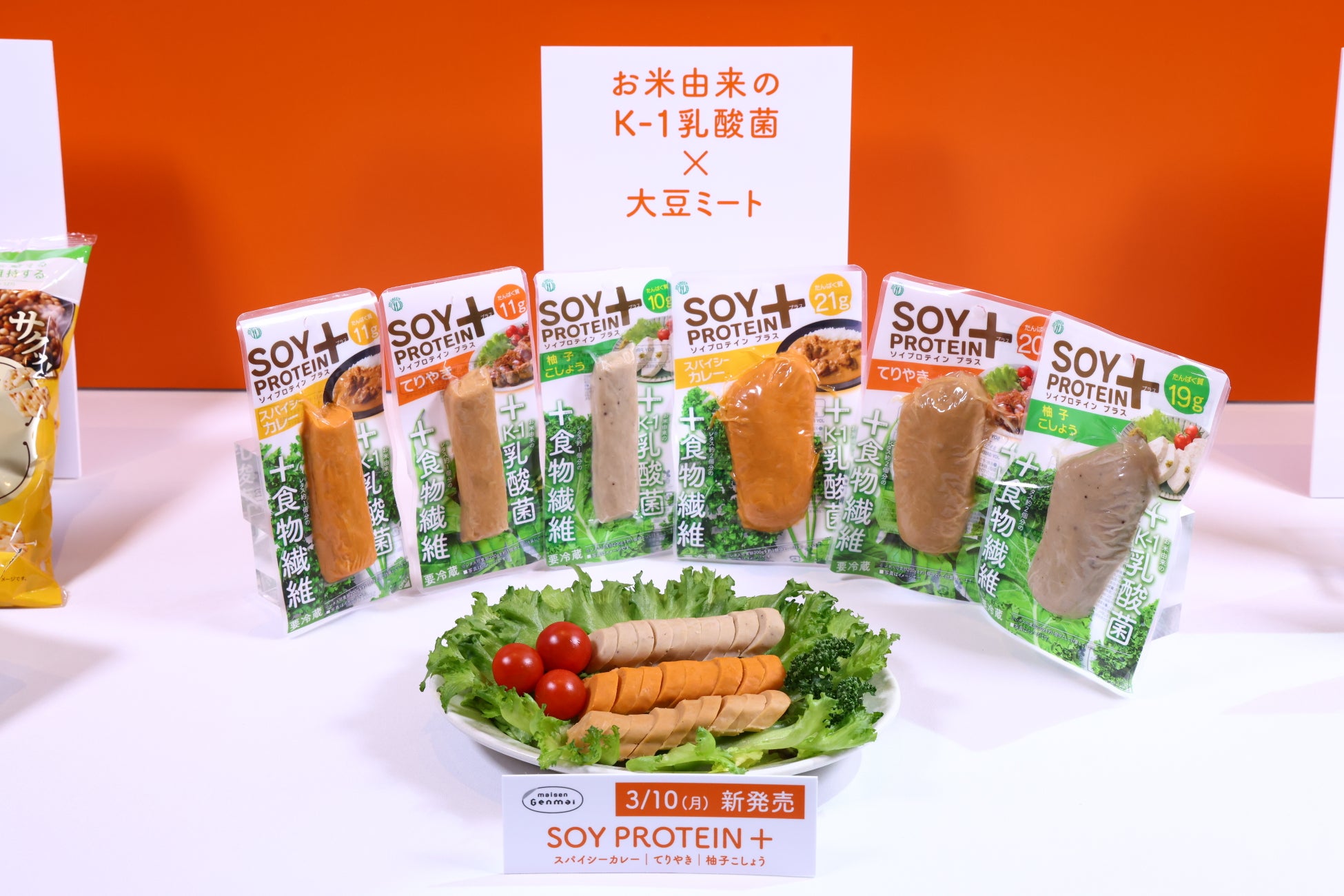 また、「SOY PROTEIN+(ソイプロテインプラス)」と「マシマシの種」を発表した、亀田製菓グループ マイセンファインフードの代表取締役社長 村井 龍昭は、大豆ミートの価値について「お客様の嗜好の多様化や地球環境への配慮、そして今後のタンパク質不足への懸念にも考慮したもの」と説明。その中で「新しい提案を含む今回の新商品を是非お試しいただきたいと思います」と自社商品を強くアピールしました。