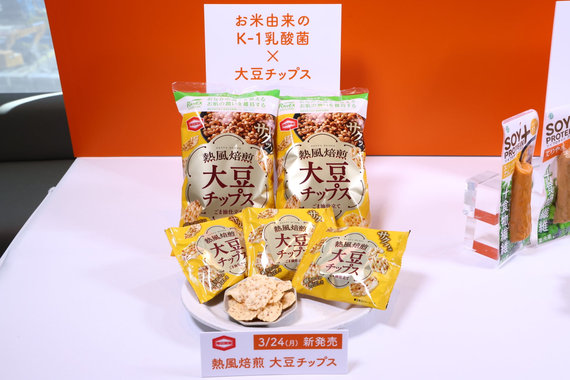 亀田製菓グループの“お米”の研究開発と技術力を“大豆”にも 亀田製菓グループから大豆を使った新商品!?「熱風焙煎 大豆チップス」「SOY PROTEIN+ (ソイプロテインプラス)」「マシマシの種」