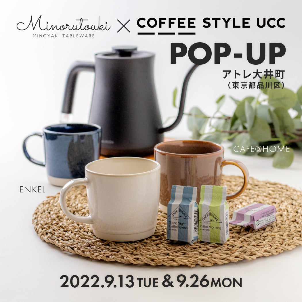 株式会社COUNTER WORKS(本社:東京都目黒区、代表取締役CEO:三瓶 直樹、以下、当社)と、株式会社 みのる陶器(所在地:岐阜県土岐市、代表取締役:玉樹 誠也、以下「みのる陶器」)及び、コーヒースタイルユーシーシー株式会社(本社:兵庫県神戸市、代表取締役:棚橋 信仁)は、アトレ大井町に初のコラボレーション店舗「みのる陶器×COFFEE STYLE UCC POP UP STORE」を2022年9月13日(火)~2022年9月26日(月)の期間限定でオープン。美濃焼の魅力を発信するとともに、トレンドや使い勝手から日々の食卓に彩りを添える食器を提案するみのる陶器と、様々な種類のコーヒーを通じて新たなライフスタイルを提案するCOFFEE STYLE UCCの両社が一つの会場に集まり、お客様の毎日によりよいひと時をお届けするアイテムをご用意しております。