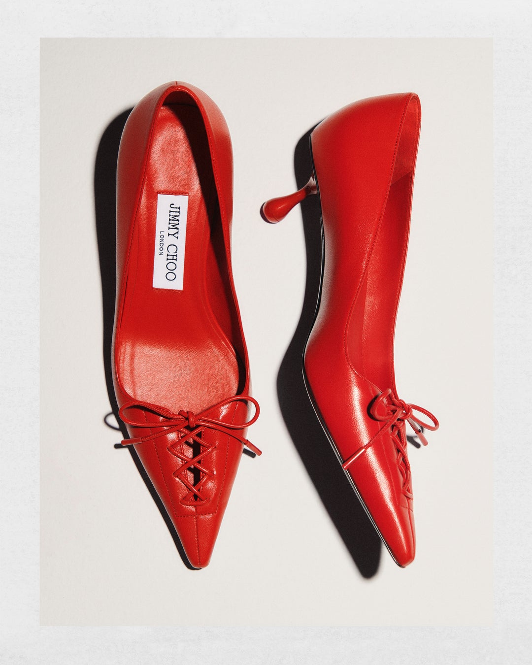 またSCARLETT(スカーレット)をはじめとする、新作シューズが登場します。今シーズンのキーとなるリッチなポストボックスレッドのナッパレザーを用い、コルセットにインスパイアされたレースアップのアッパーと、特徴的なドロップヒールが印象的なシルエットのシューズです。