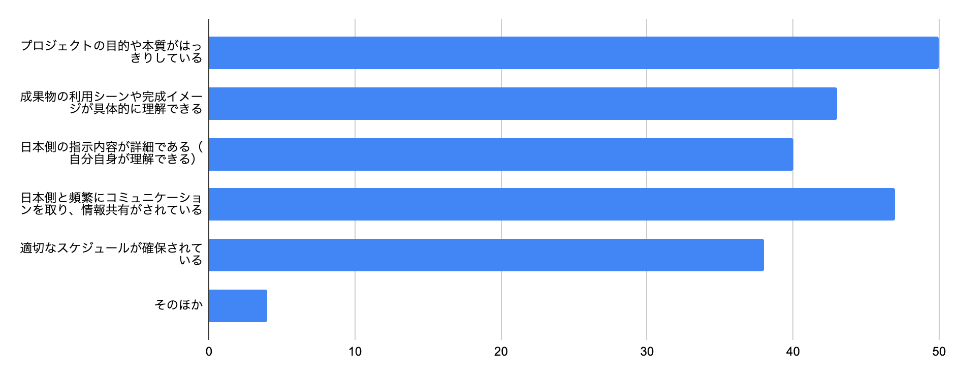 現地のエンジニアの姿勢やマインドが見えてきましたが、その力を発揮するためのモチベーションにも注目してみました。その結果、「職場環境や開発環境」がとても大きな影響を及ぼしていることが分かりました。
