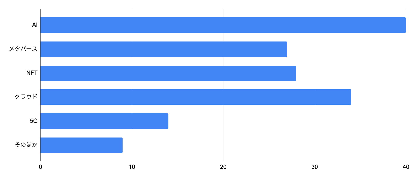 そんな勉強熱心なエンジニアたちは、技術領域のなかでもとくに「AI」や「クラウド」に対して、興味関心を持っているようです。