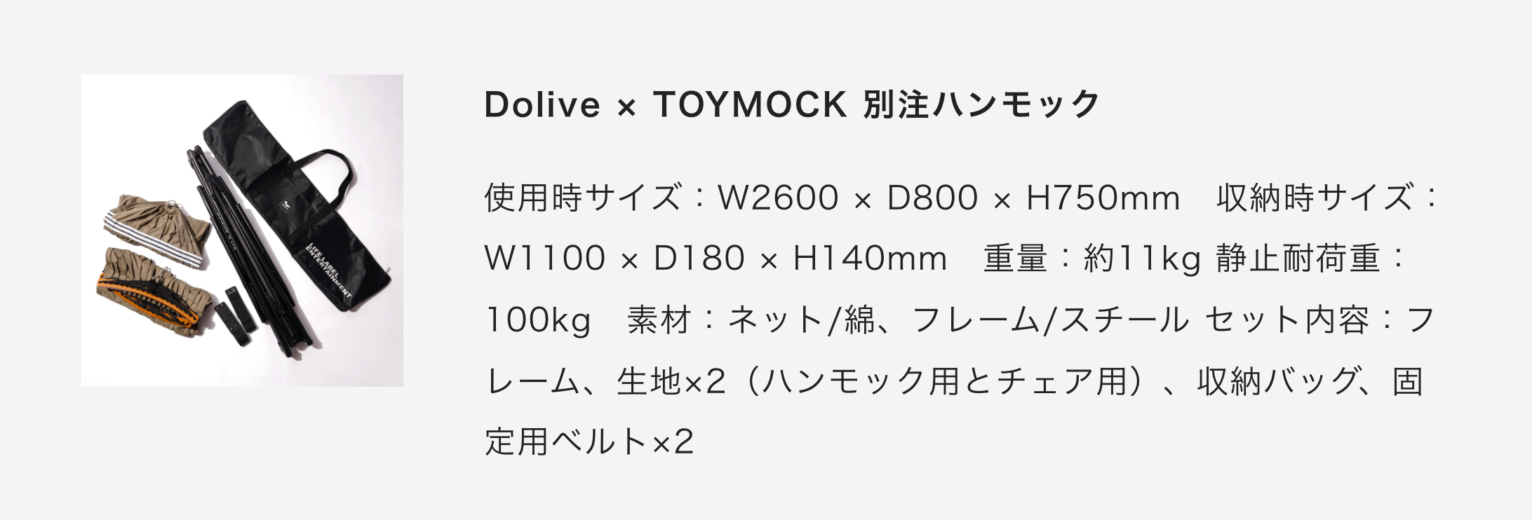 Dolive ✖ TOYMOCK オリジナル2wayハンモックプレゼントキャンペーンを実施中!