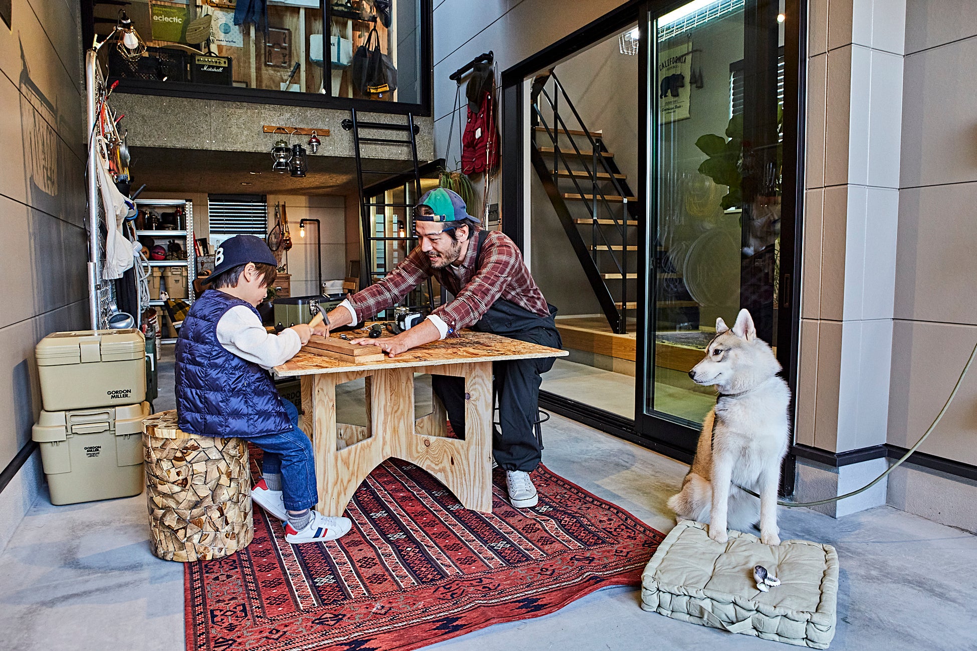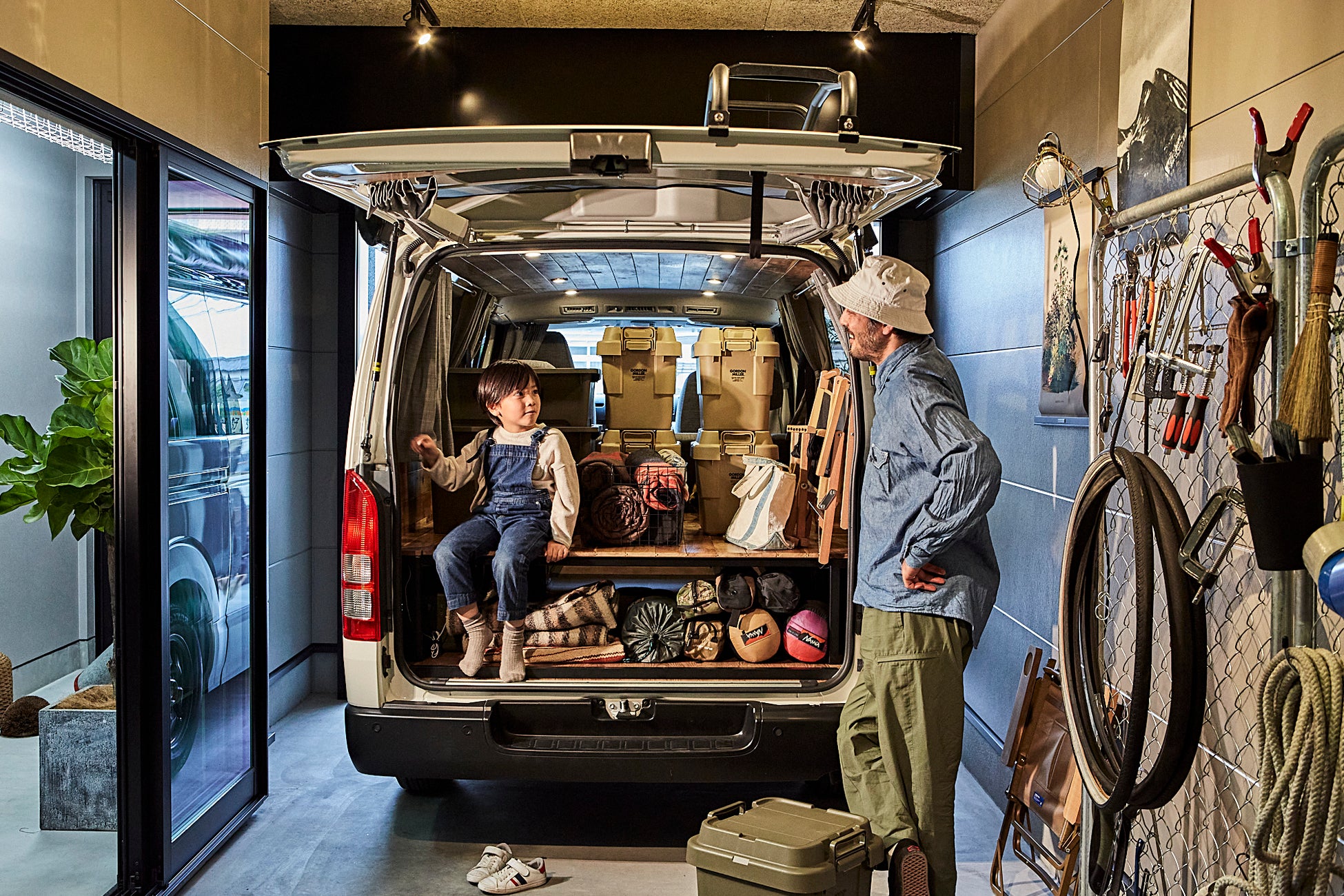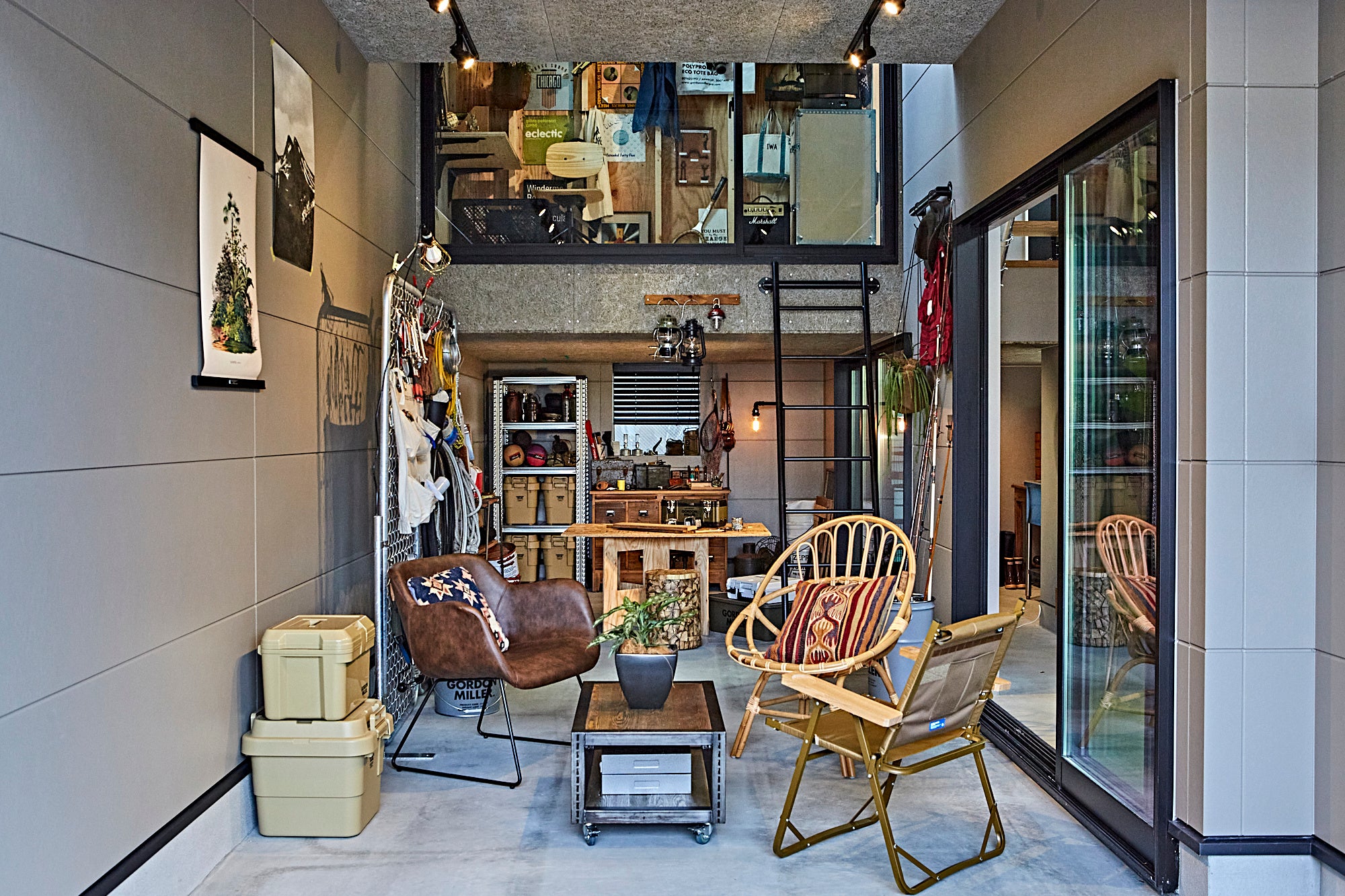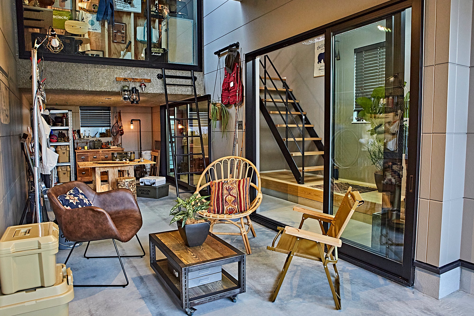 家まるごとガレージ空間のTHE HOUSE GARAGE。家のナカとソトがシームレスに繋がる空間だからこそ、インテリアにもこだわりたい。ガレージではもちろん、家の中でもインテリア代わりに使える優れモノです。