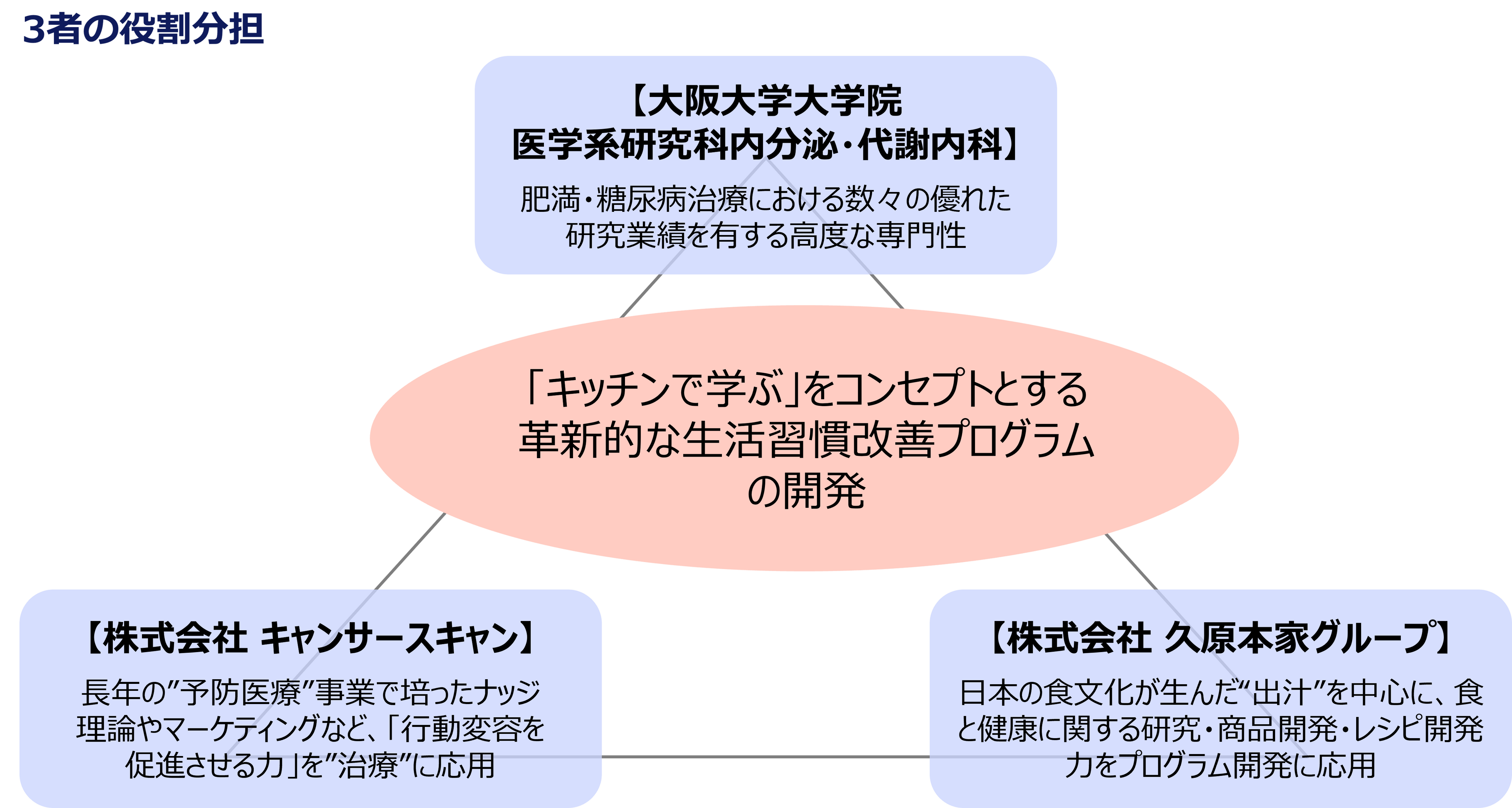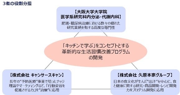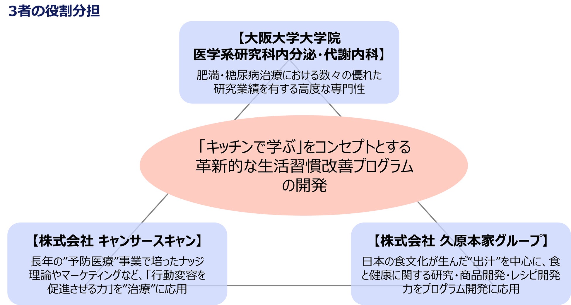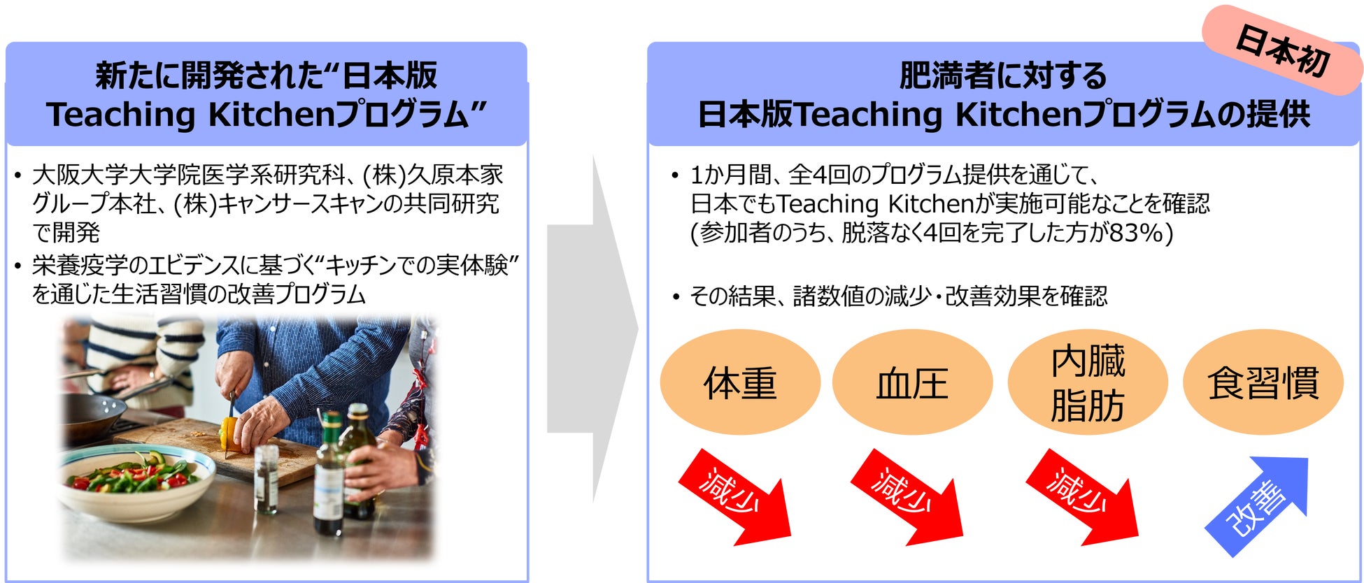 株式会社キャンサースキャン(本拠地:東京都品川区、代表:福吉 潤、以下 当社)は、大阪大学大学院医学系研究科の下村伊一郎教授・馬殿恵准教授(内分泌・代謝内科学・ライフスタイル医学寄附講座)らの研究グループと、日本人の生活習慣に合わせた日本版Teaching Kitchenプログラムを開発してきました。