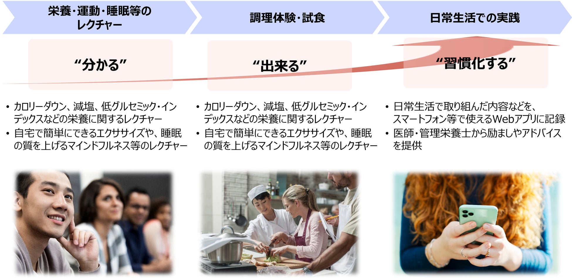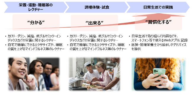 当社は、2022年6月に大阪大学大学院医学系研究科・株式会社久原本家グループ本社との3者による共同研究契約を結び、日本版Teaching Kitchenプログラムの開発と肥満者へのパイロット試験を実施し、今回上記の成果を出すことに成功しました。