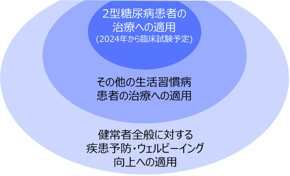 また、食事・運動・睡眠などの日々の生活習慣の改善は、すでに発症した生活習慣病の治療だけにとどまらず、疾病予防による健康長寿の達成やウェルビーイング向上にもつながるものであることから、企業の職場での実施など、今後健常者に対する社会実装を見据えた研究についても進めていく予定です。
