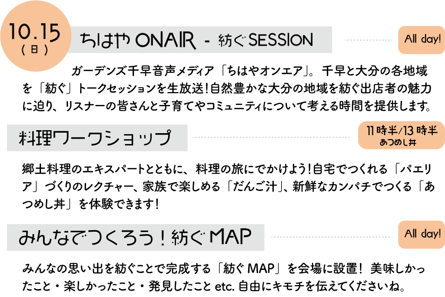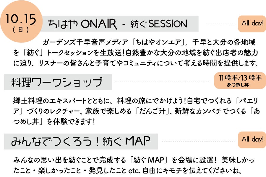 【出店者・プログラム】大分と福岡のつながりを育み、交流が生まれる「紡ぐマルシェ」10/14-15 ガーデンズ千早で開催