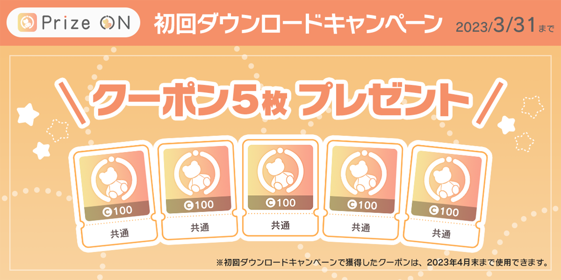 交換条件:『Prize ON』アプリのダウンロードで、UFOキャッチャーで使用可能な500円分クーポンをプレゼント