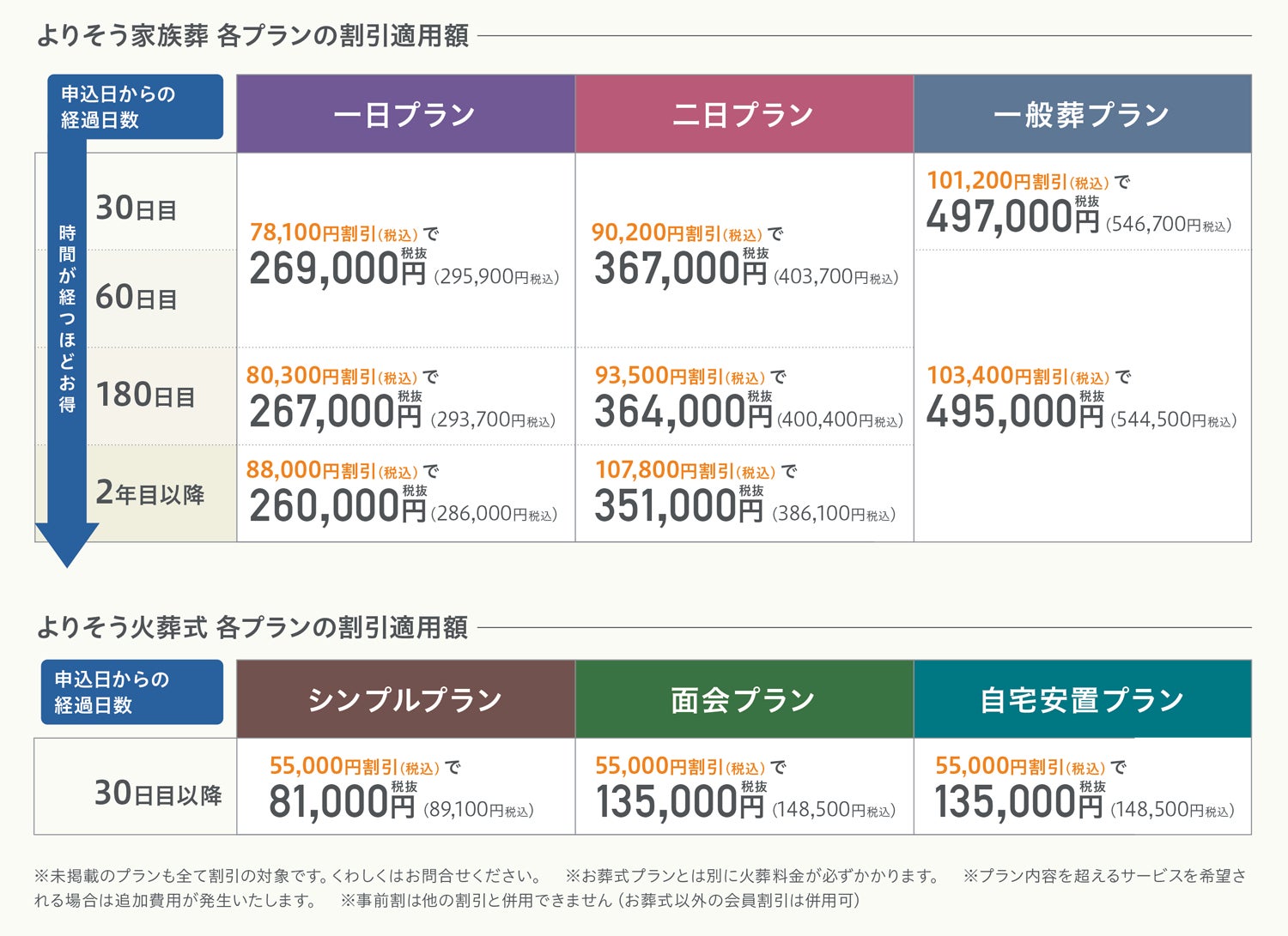 ※一般葬については60日目、180日目、2年目の割引額は同一です。