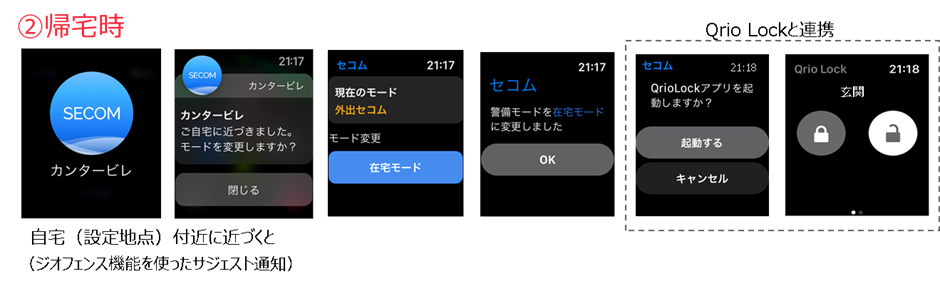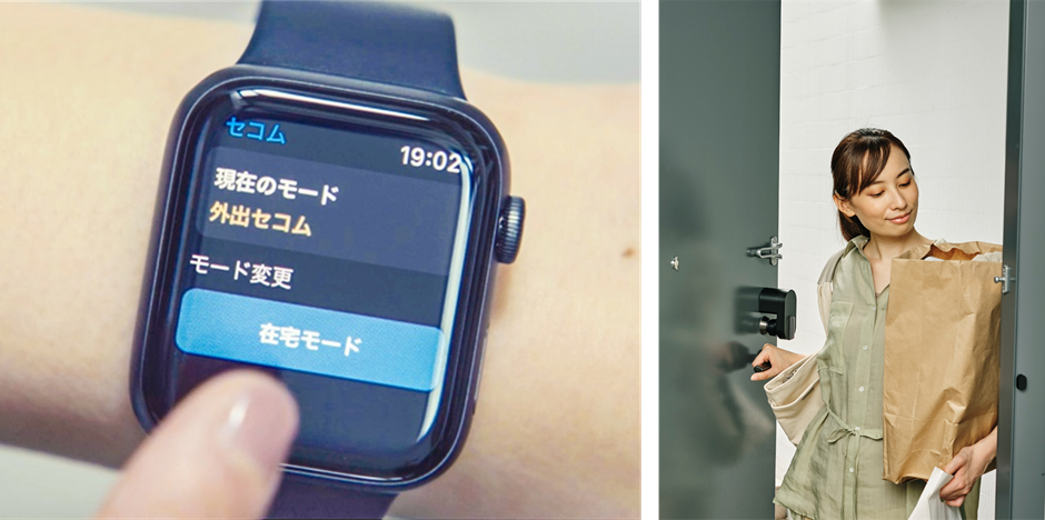 セコムから新たに配信されるアプリ「SECOM カンタービレ」では、外出や帰宅等の際、アプリからの通知により、「Apple Watch」や「iPhone」をタップするだけでセキュリティの警戒・解除を操作できるようになるため、物理的な操作キーを持つ必要がなく「セコム・ホームセキュリティ」をより一層便利で快適に利用いただけます。