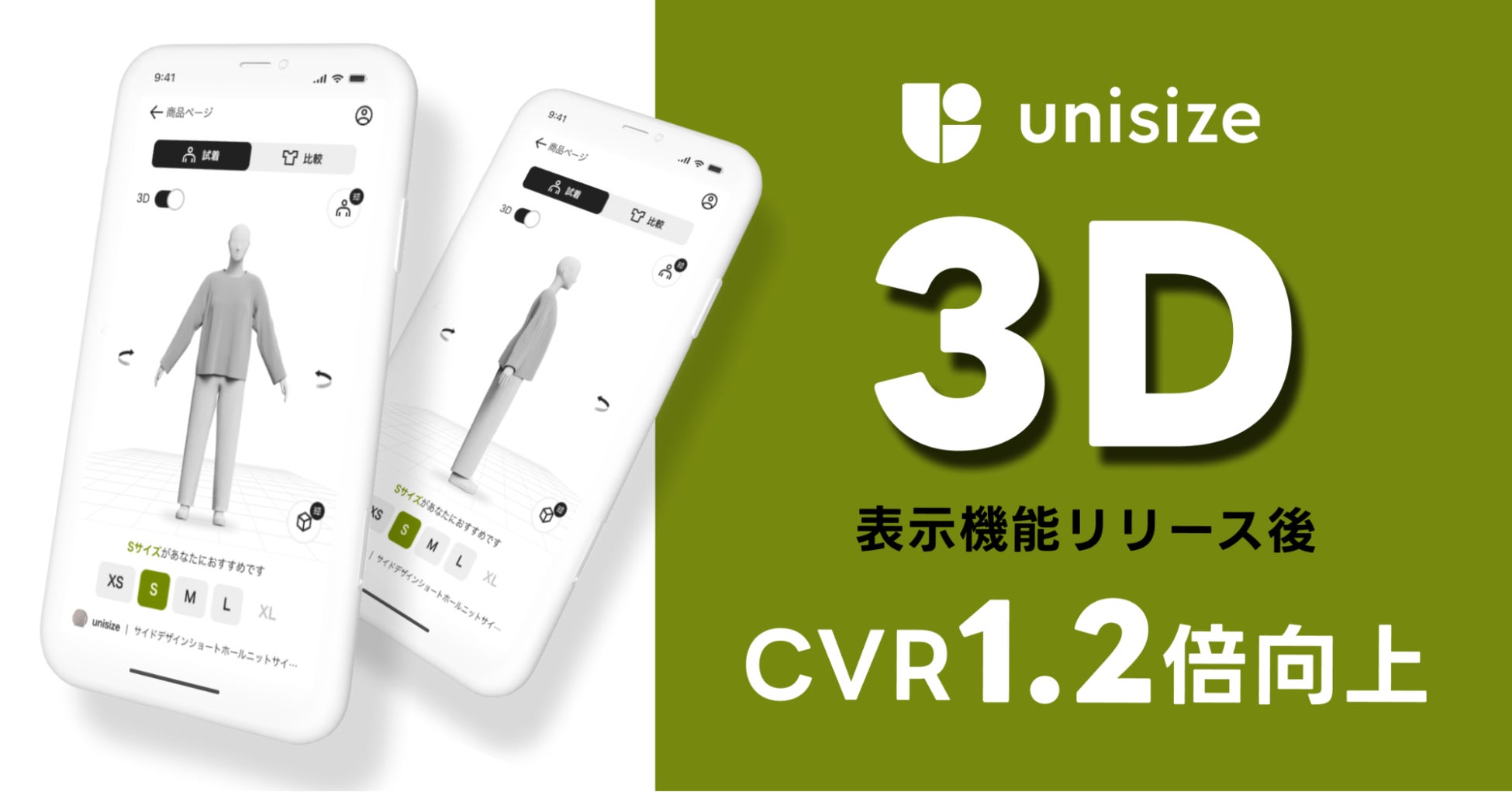 株式会社メイキップ(東京都新宿区、代表取締役:柄本 真吾、以下「メイキップ」)は、2025年2月に提供を開始した「unisize 3Dシルエット表示機能」の導入により、ECサイトの購入率(CVR)が1.3%から1.5%へと向上し、約1.2倍となったことが明らかとなりました。unisizeを導入しているクライアント様からは、3Dシルエットによる視覚的なわかりやすさや、各機能の利便性に対して高いご評価のお声をいただいております。