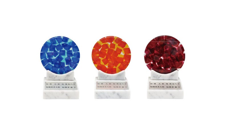 光を取り込んで輝く美しさと、色やデザインの自由度の高さが特徴で、様々な技法により、生み出されるアート性の高いガラスと自然の御影石を組み合わせることで、従来の石材に光と色彩が織りなす表現力が加わります。