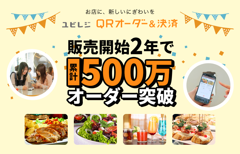 「ユビレジ QRオーダー&決済」の累計オーダー数が販売開始2年で500万回を突破!客足戻る飲食店、4〜6月の平均オーダー金額は前年同期比の4倍超