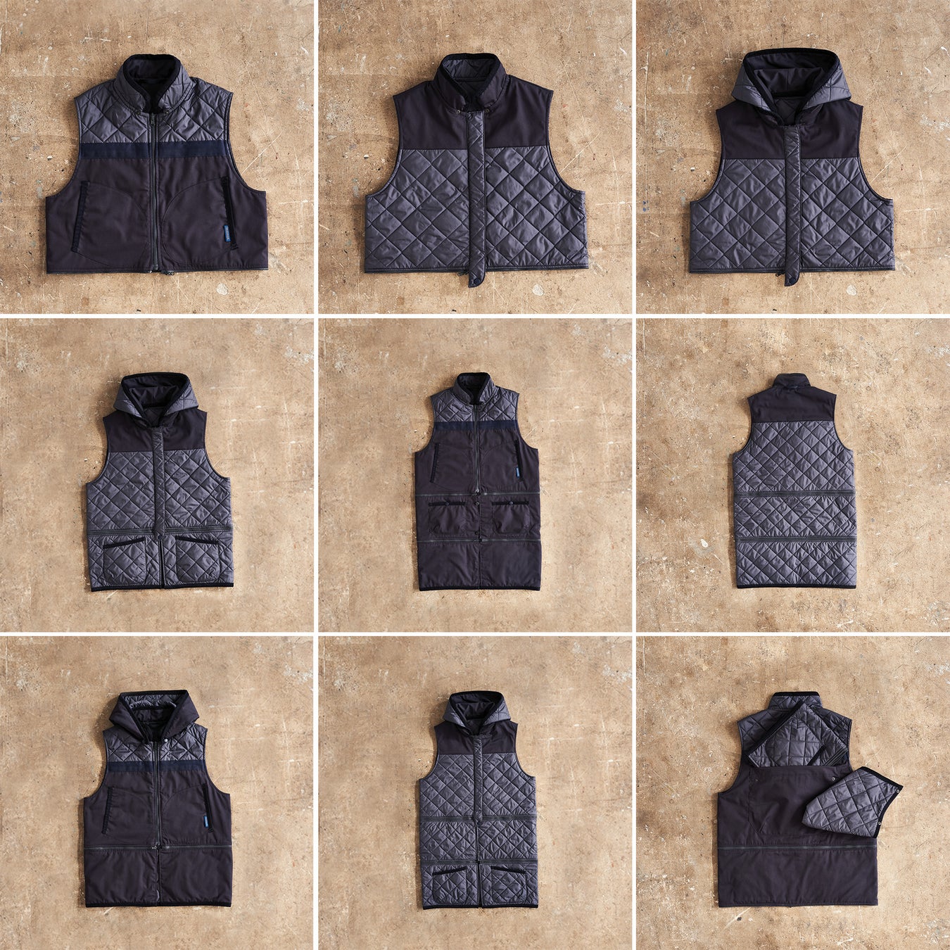 ライアン・ガンダーは、過去20年以上にわたり、彫刻、アパレル、建築から絵画、書体、パフォーマンスまで、幅広いアートワークを通じて国際的な評価を確立しています。今回のコラボレーションでは、16通りの着こなしができるモジュール式ジレ “Things Just Happen To Me” を制作しました。