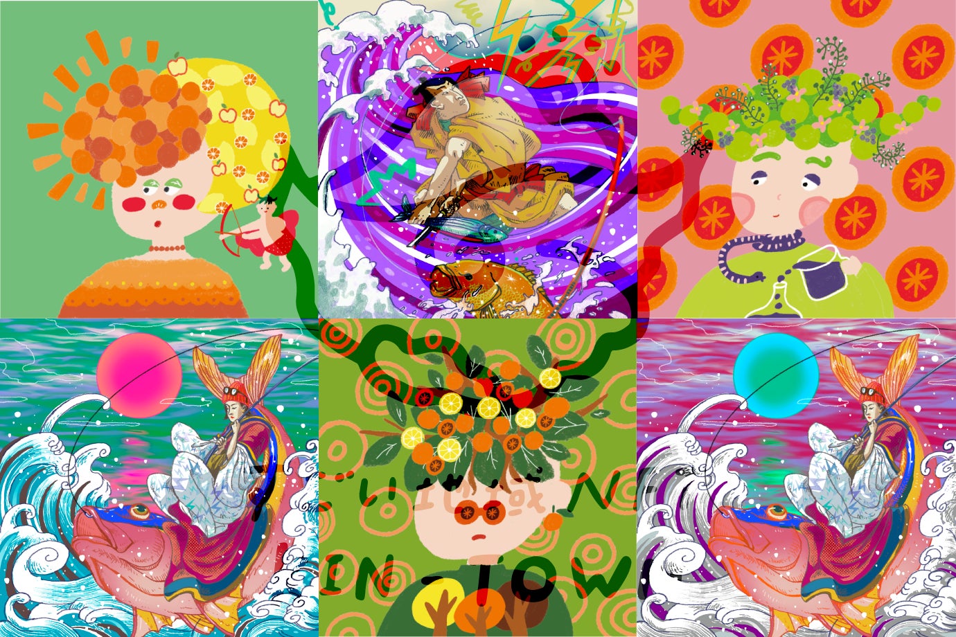 追加販売分のデジタルアートは、いなもりあいこ(くだものおすそわけパスポート)・emi tanaji(最果ていきもの学校 漁師編)制作による新たな絵柄・カラーのビジュアルを用意しました。