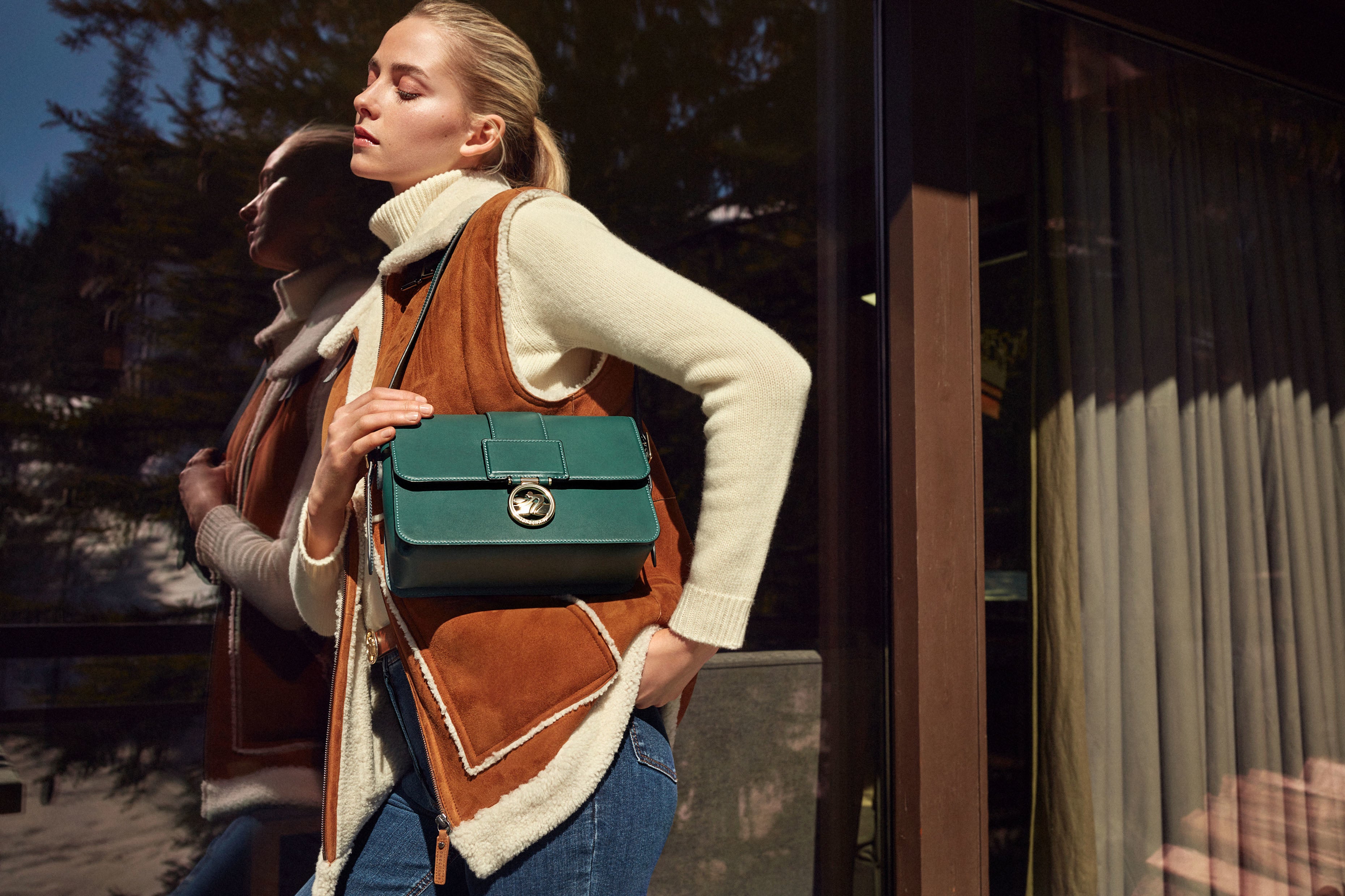 新コレクションは、クラシカルながらもひねりが効いたデザインと毎日の必需品が収まる大きさながらも決して重たくみえないサイズ感、そしてその日のスタイルに機能的に寄り添いながらもオーセンティックな魅力を放つディテールという現代のパリジェンヌが求める要素をすべて兼ね備えています。メゾンの職人たちによって細部まで丁寧に仕上げられたクロスボディバッグは、なめらかなカーフスキンの質感を活かした丸みのあるフォルムが際立ち、メゾンに代々受け継がれてきたサヴォアフェールと時とともにその技を極め続けてきたスピリットが宿っています。そしてバッグのフラップにはペールゴールドの“ロンシャン・ホース”メダイヨンが輝き、自由気ままにエナジェティックに“今”を生きるロンシャンウーマンをメゾンの伝統息づくデザインのなかに表現しています。