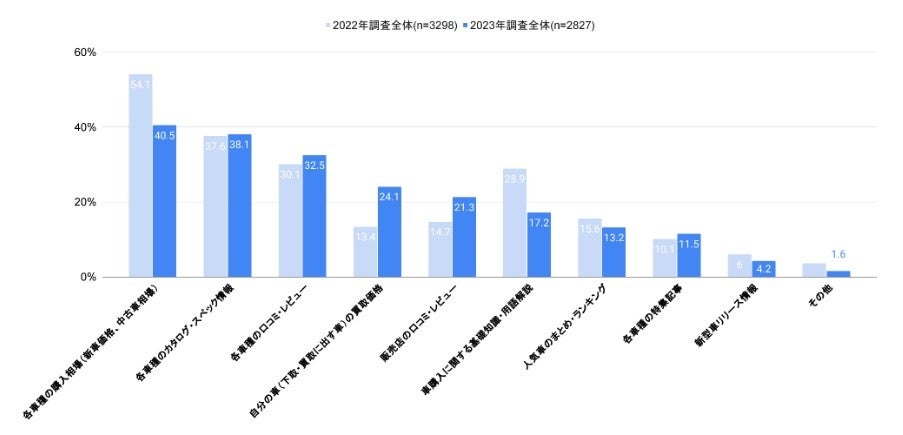「下取・買取価格」24%(前回比較+11pt)、「販売店の口コミ・レビュー」21%(前回比較+7pt)