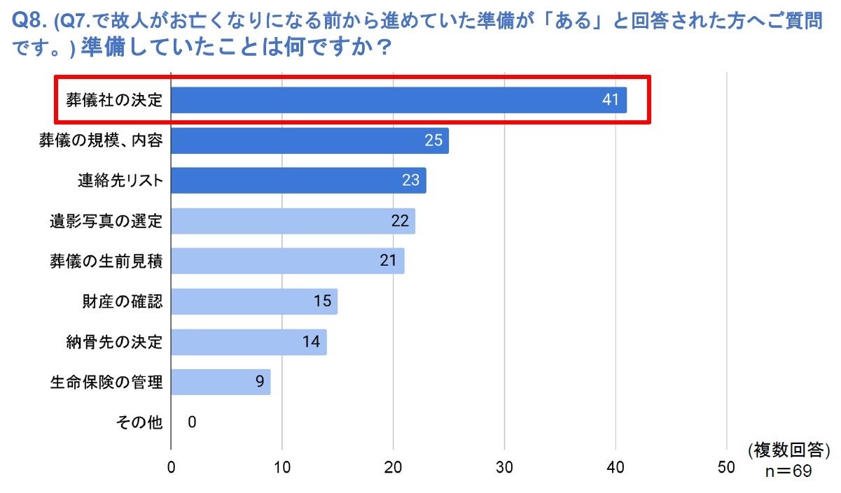 事前準備で最も回答が多いのは「葬儀社の決定」が59%
