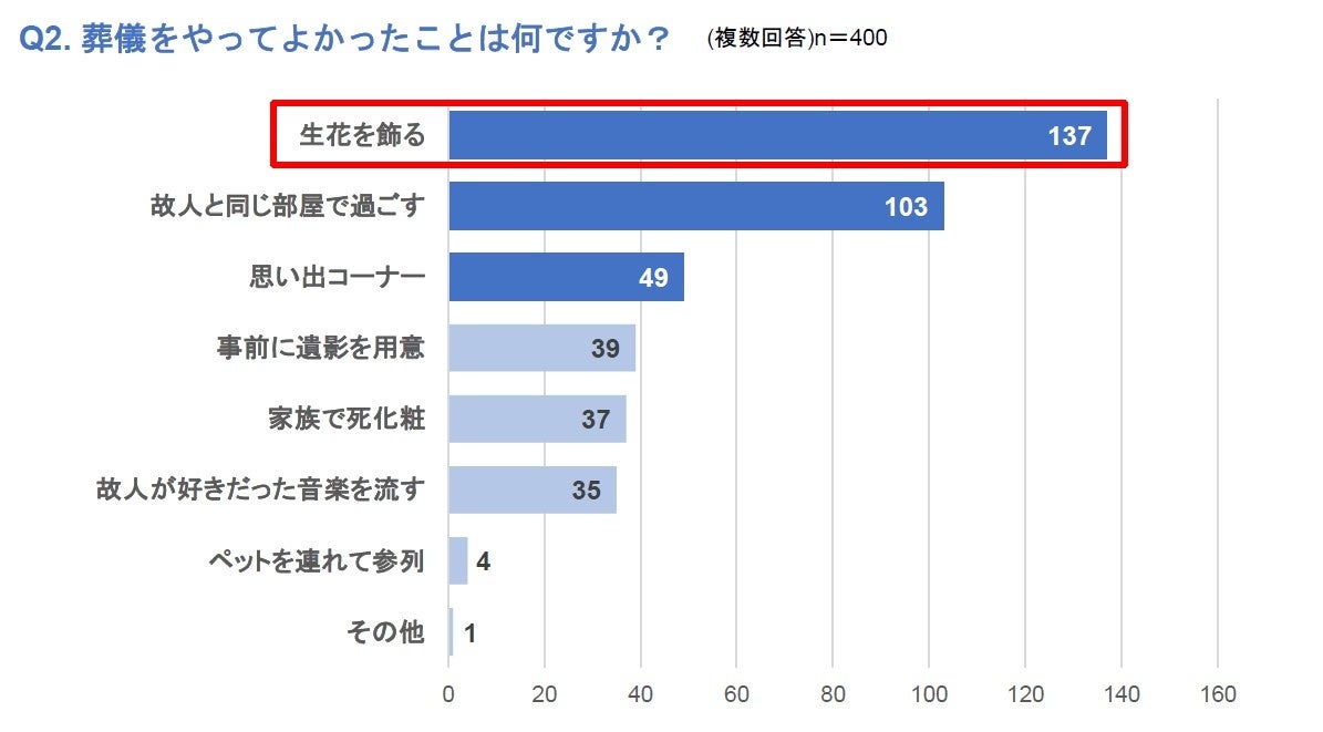 - 葬儀でやってよかったことで一番多いのは「生花を飾ること」