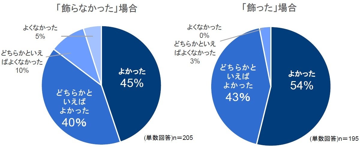 「飾らなかった」場合が85%に対し、「飾った」場合が98%と高い結果となりました。