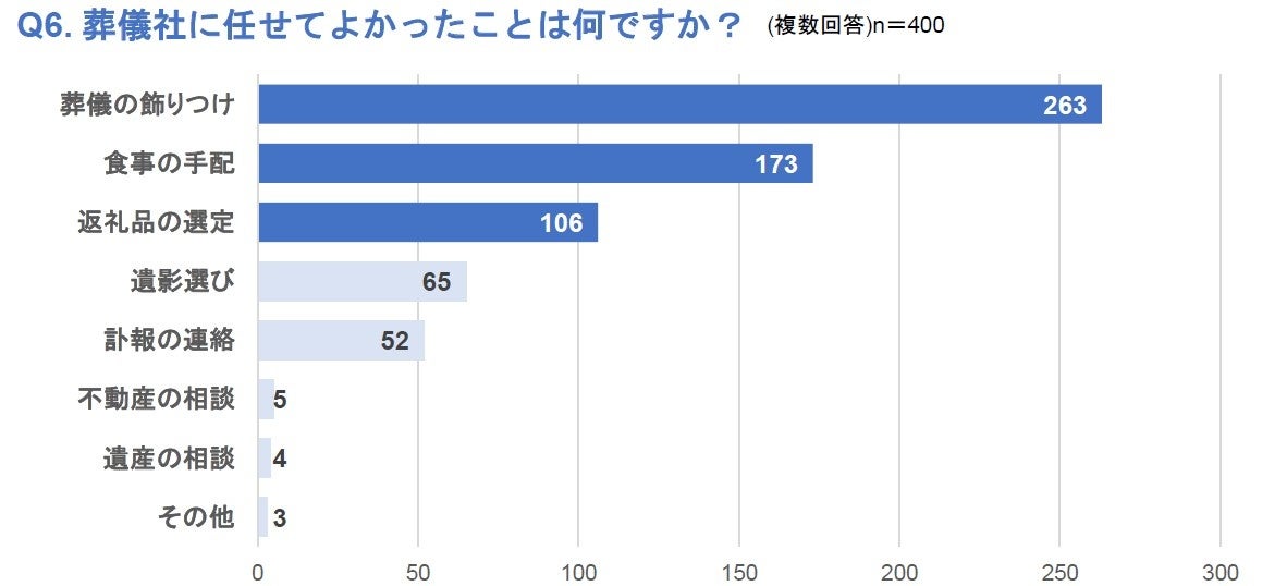 - 葬儀社に求めることは「葬儀の飾りつけ」、「食事の手配」、「返礼品の選定」