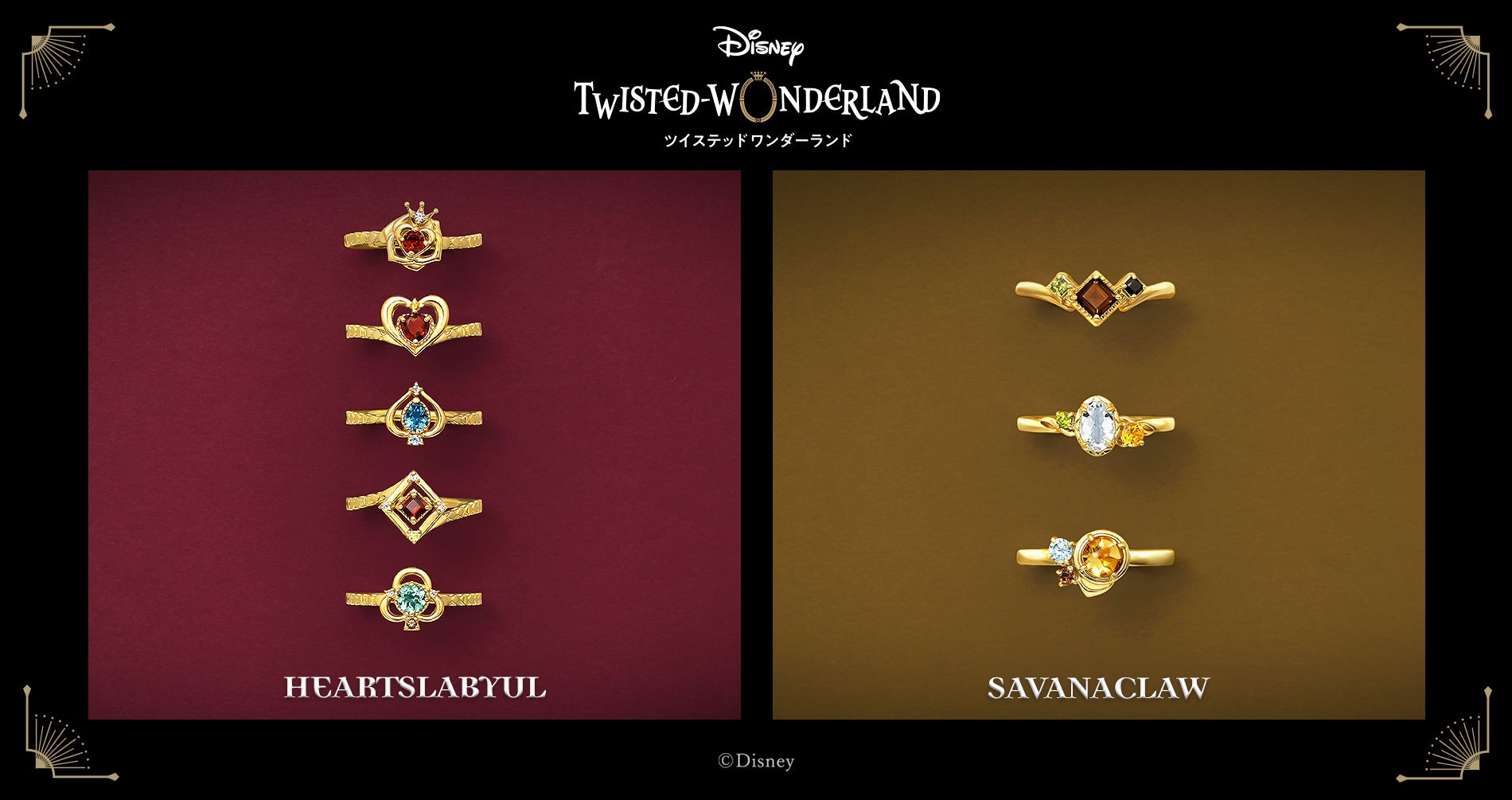 『ディズニー ツイステッドワンダーランド』コレクションジュエリー第5弾☆「ハーツラビュル寮」「サバナクロー寮」の寮生たちをイメージしたリングが登場!