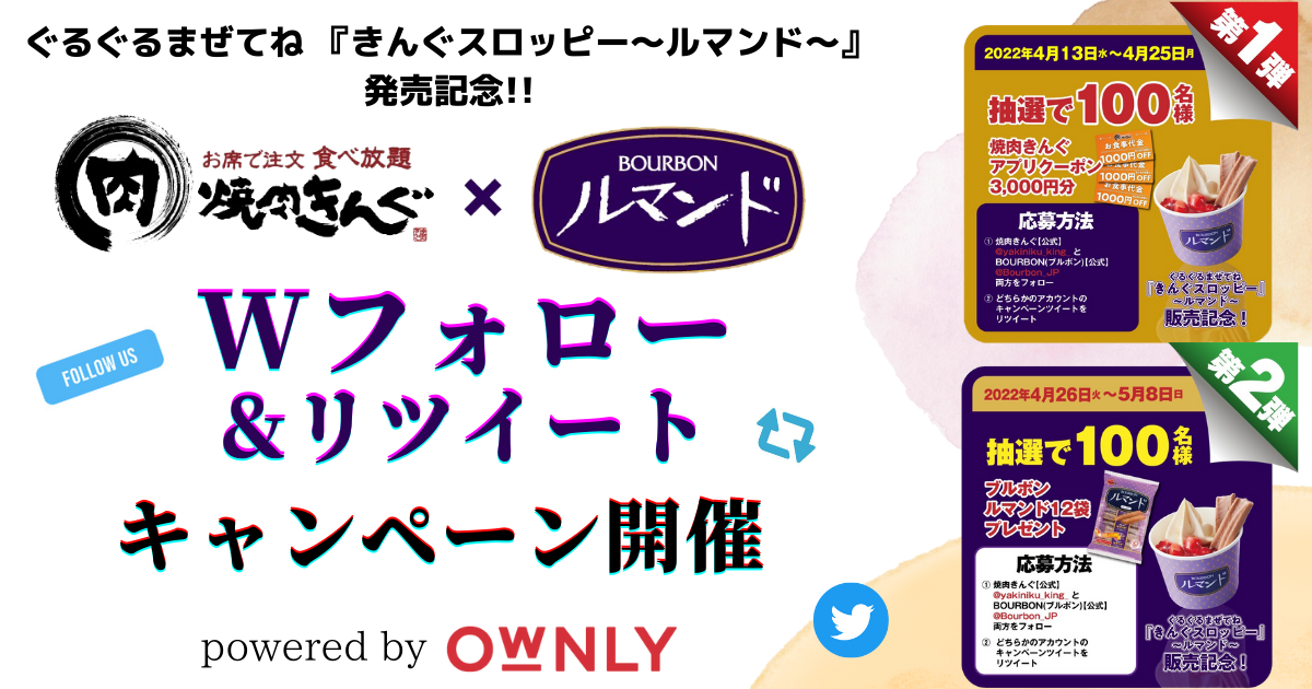 OWNLYを活用して、「ぐるぐるまぜてね 『きんぐスロッピー 』〜ルマンド〜」の発売を記念し、「焼肉きんぐ×ブルボン」 Wフォロー&リツイートキャンペーンを開催!