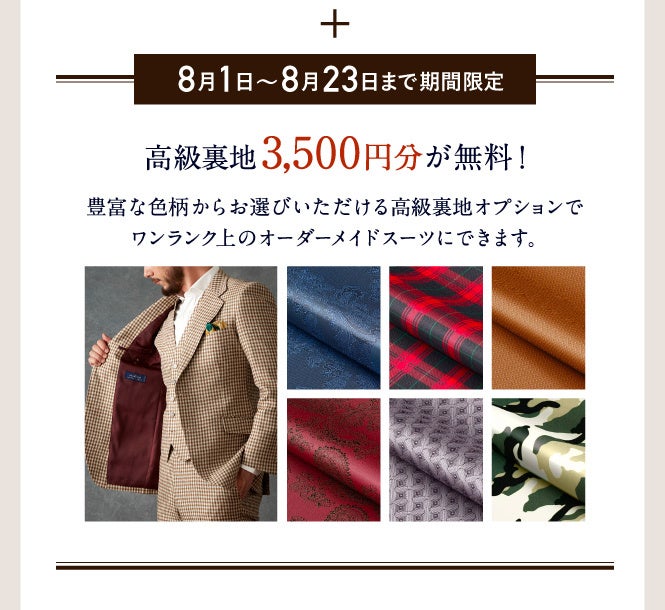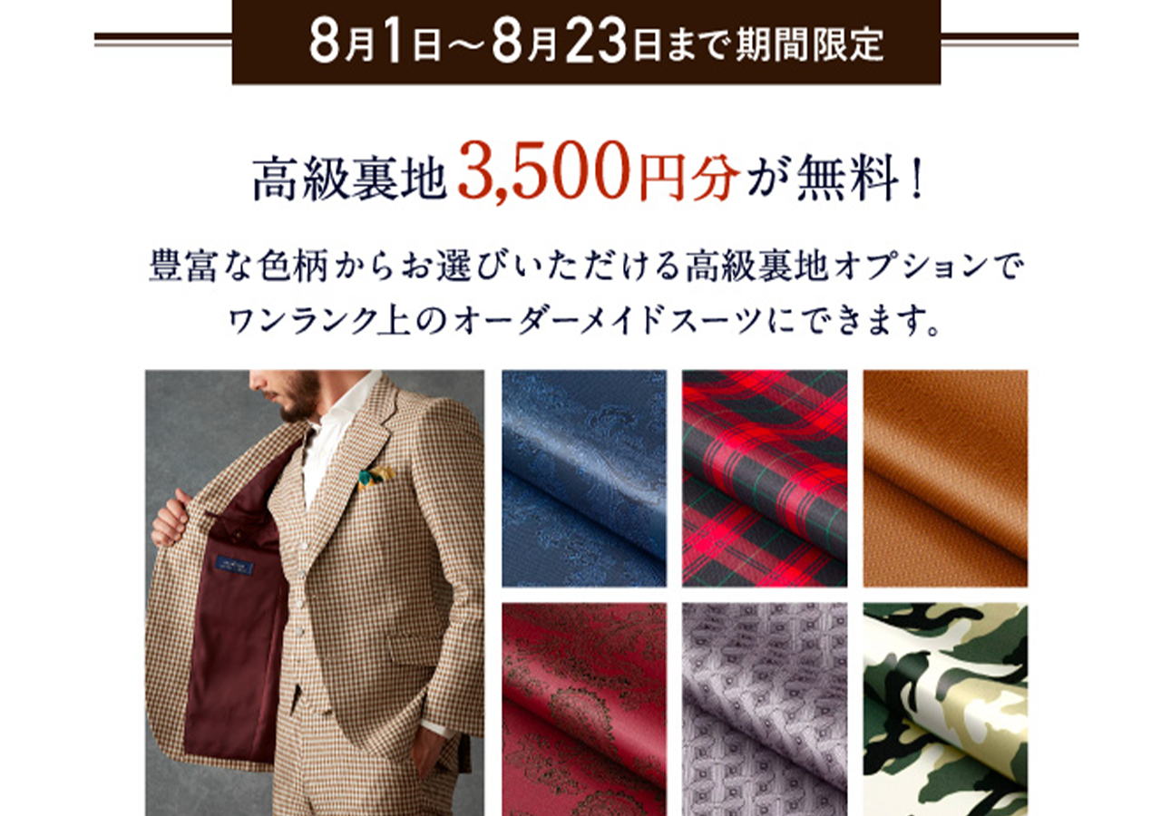 本格オーダースーツ2着46,000円~(税込50,600円~)