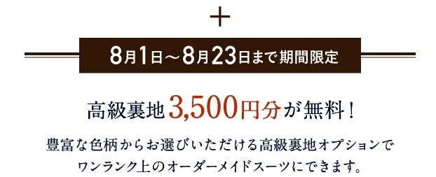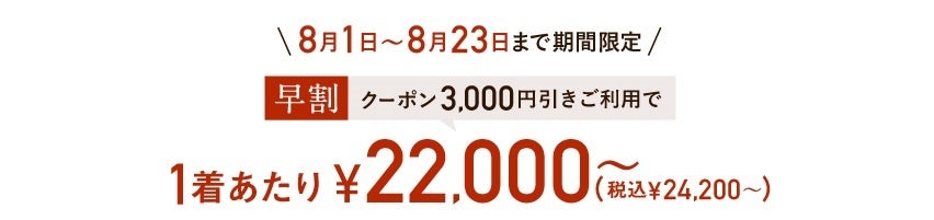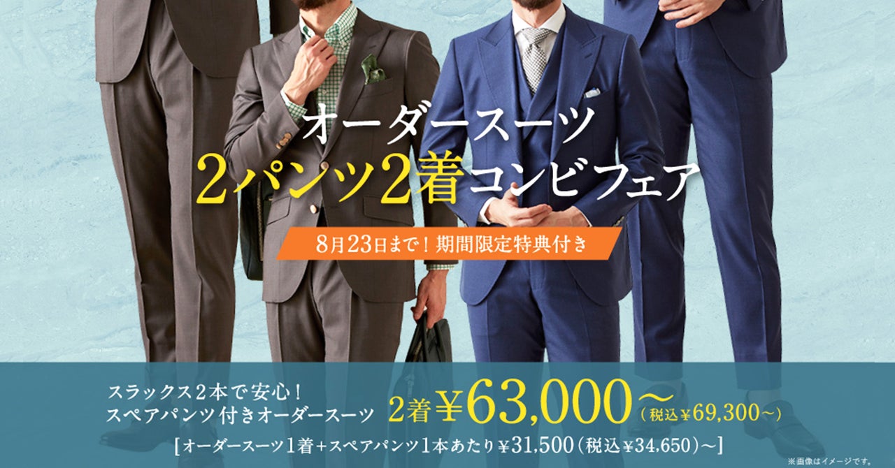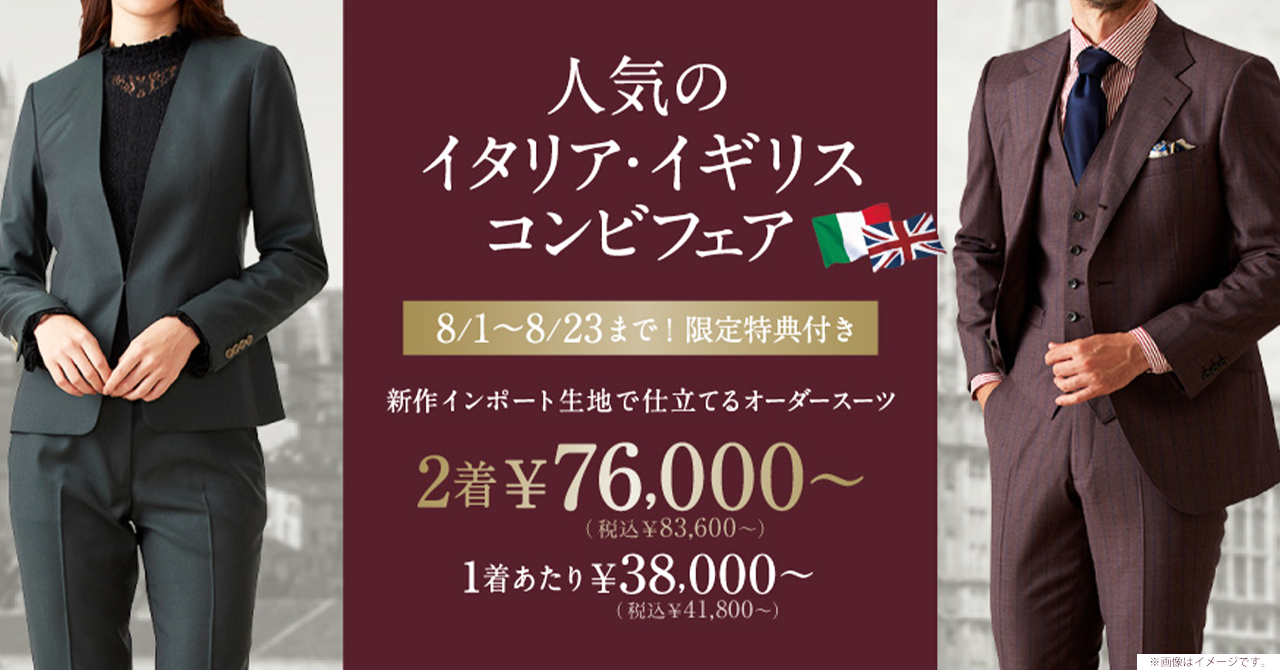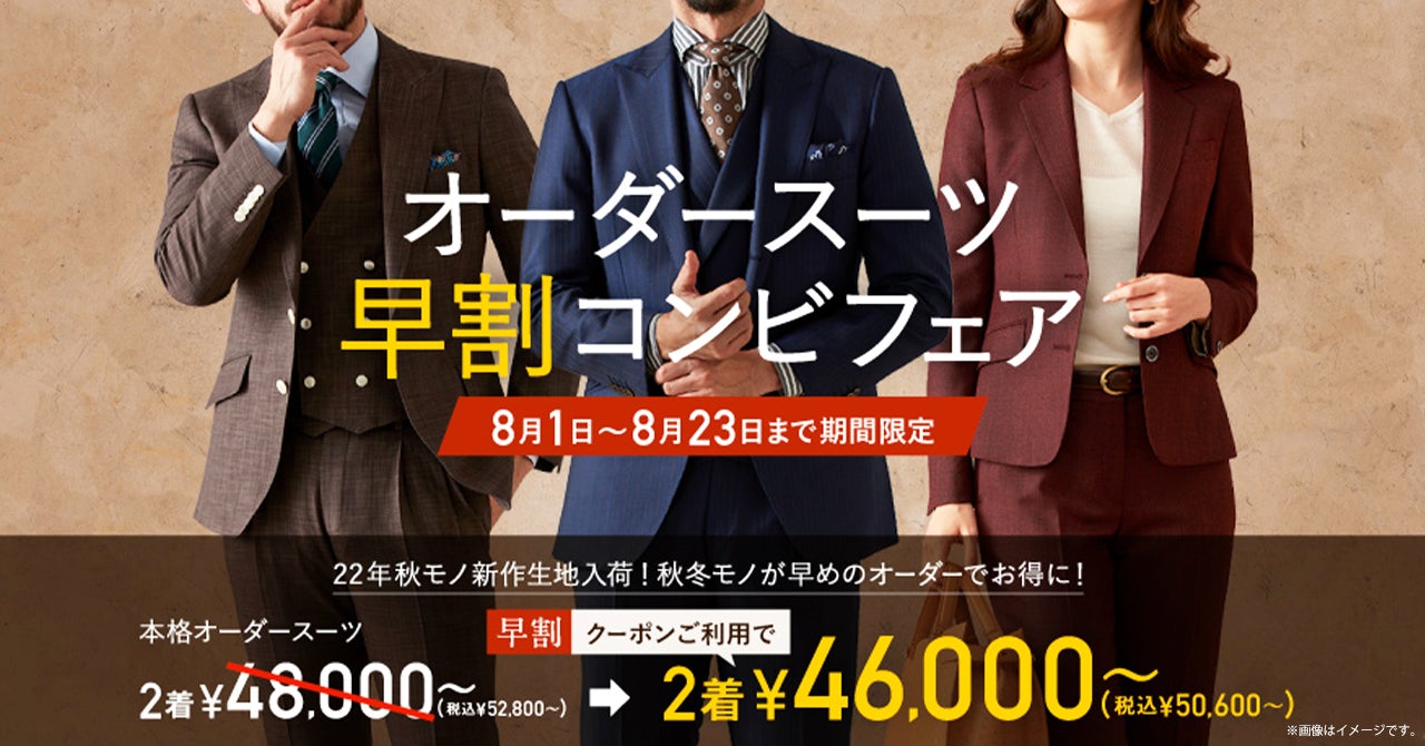本格オーダースーツ専門店 GINZAグローバルスタイルでは、2022年8月1日(月)~8月23日(火)まで期間限定で、秋モノ新作にも使える<割引クーポン>付きの【早割コンビフェア】を開催いたします。