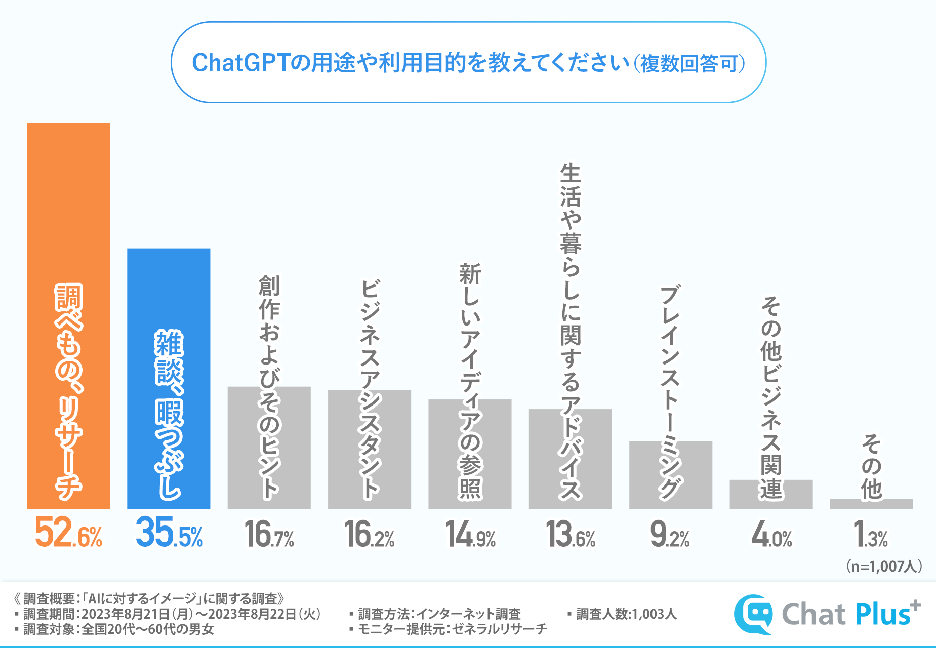 調べ物やリサーチ目的でChatGPTを利用する方が多いことが分かりました。