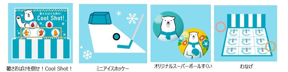 昨年に続き2回目の開催となる今回のイベントは、「子供も大人もワクワクたのしい夏祭り」をテーマとし、納涼チャレンジと題したスーパーボールすくいやわなげ、的当てゲームのほか、かざぐるまの工作などを体験いただけます。また、白くまくんをモチーフとしたミストゲートやドームテント、氷の中に閉じ込められたような写真を撮影できる凍結フォトスポットなどの涼しさを演出するコンテンツをご用意しています。また、会場でゲームに参加された方やSNSに写真を投稿いただいた方を対象に※1※2、オリジナルグッズやフローズンドリンクなどのプレゼントもご用意しています。