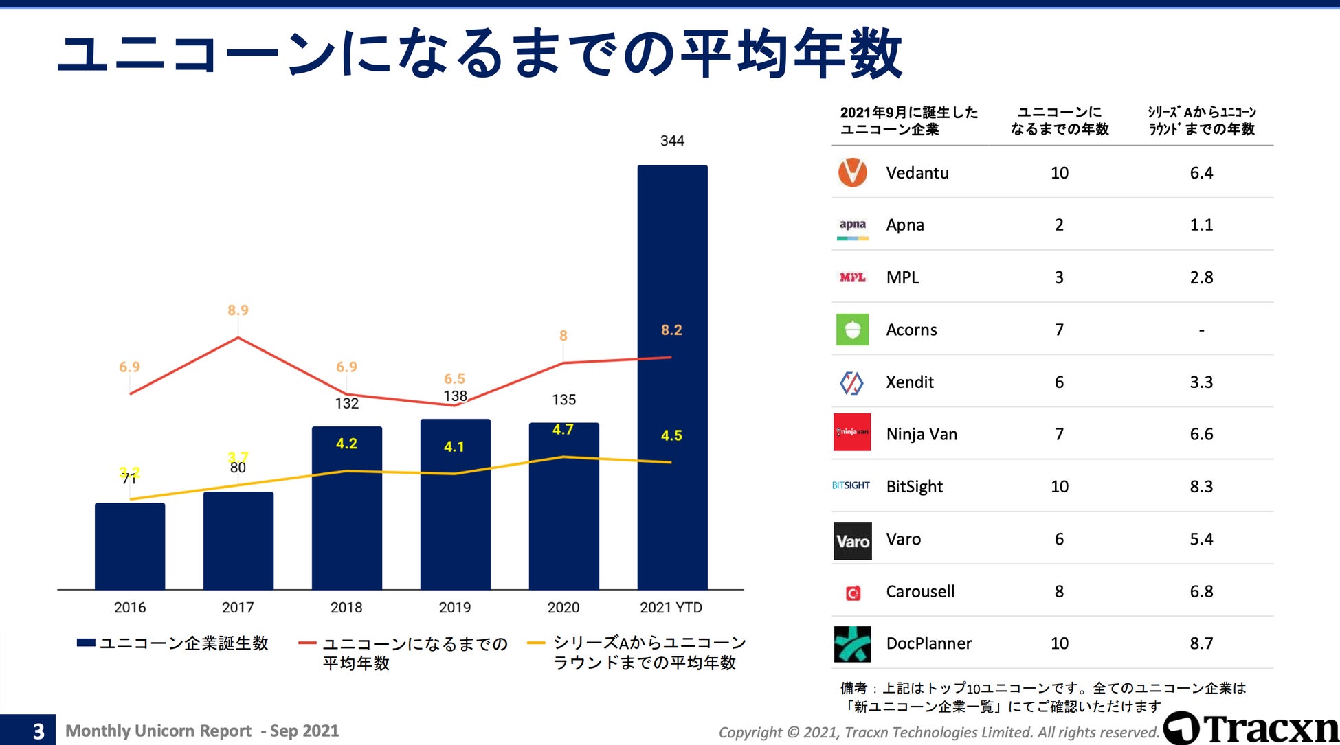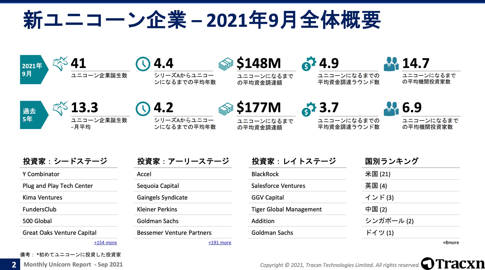 イシン株式会社(本社:東京都新宿区 代表取締役社長:片岡 聡)は、スタートアップデータ分析サービス「Tracxn」による「2021年9月 Monthly Unicorn Report」の日本語訳版をリリースいたしました。