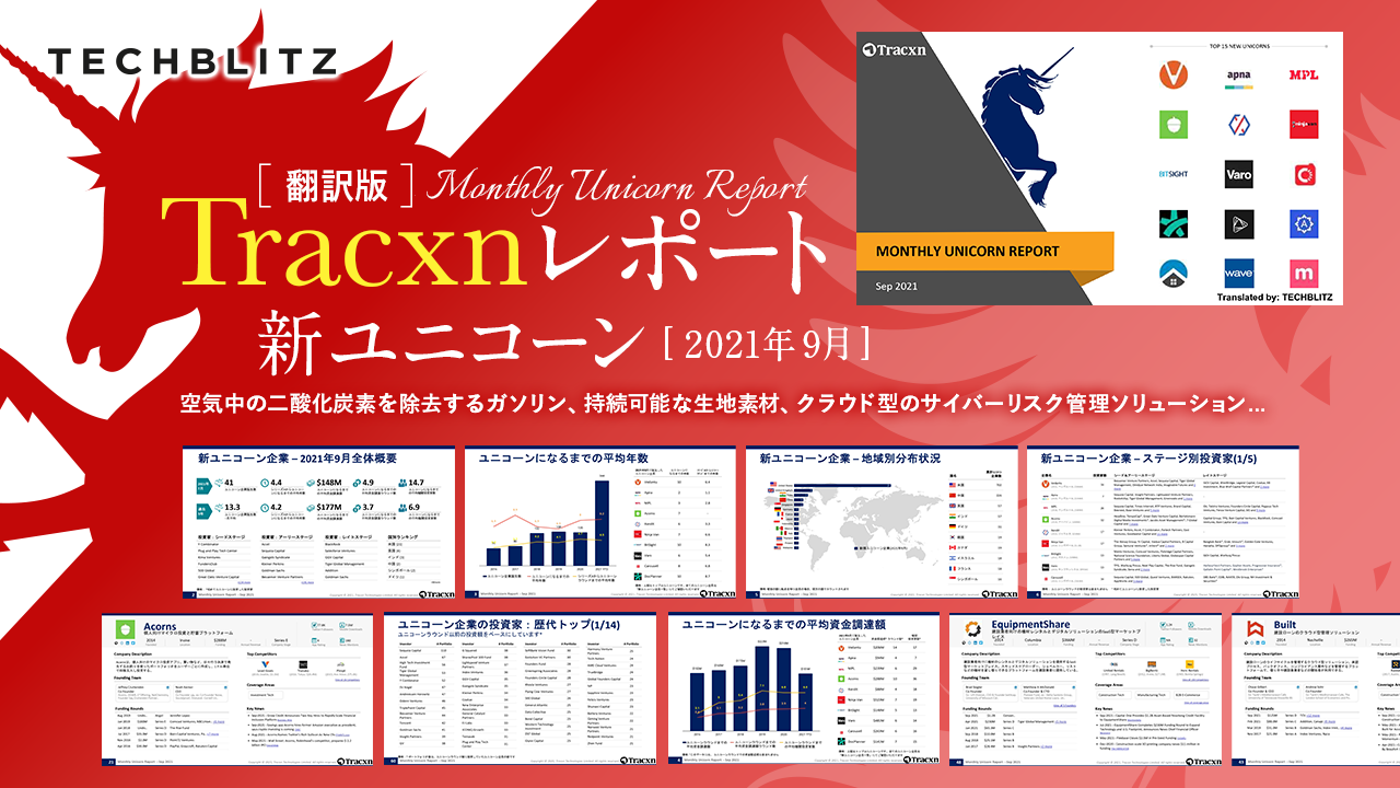 Tracxnとパートナーシップを結ぶTECHBLITZは今回、「2021年9月 Monthly Unicorn Report」を日本語版でリリースいたしました。