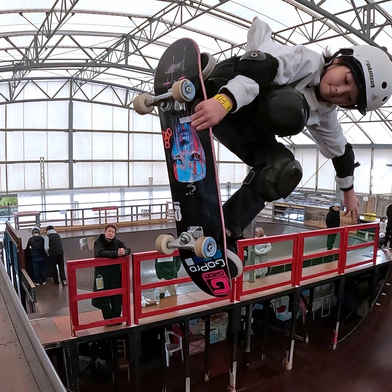 河上恵蒔 (かわかみ えま) は、2023年の日本スケートボーディング協会バーチカルコンテスト兼WINGRAM CUP 2023バーチカルシリーズVol. 1で優勝したほか、「バックサイド540」という技を1分間に8回決めてギネス記録を樹立しました。