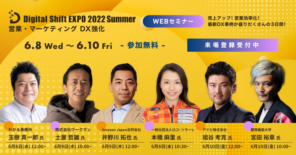 <講演者決定&明日開催>任天堂Wii®開発者やワークマン専務取締役ほかDX先駆者が最新事例を大公開!『Digital Shift EXPO 2022 Summer~営業・マーケティング DX強化~』