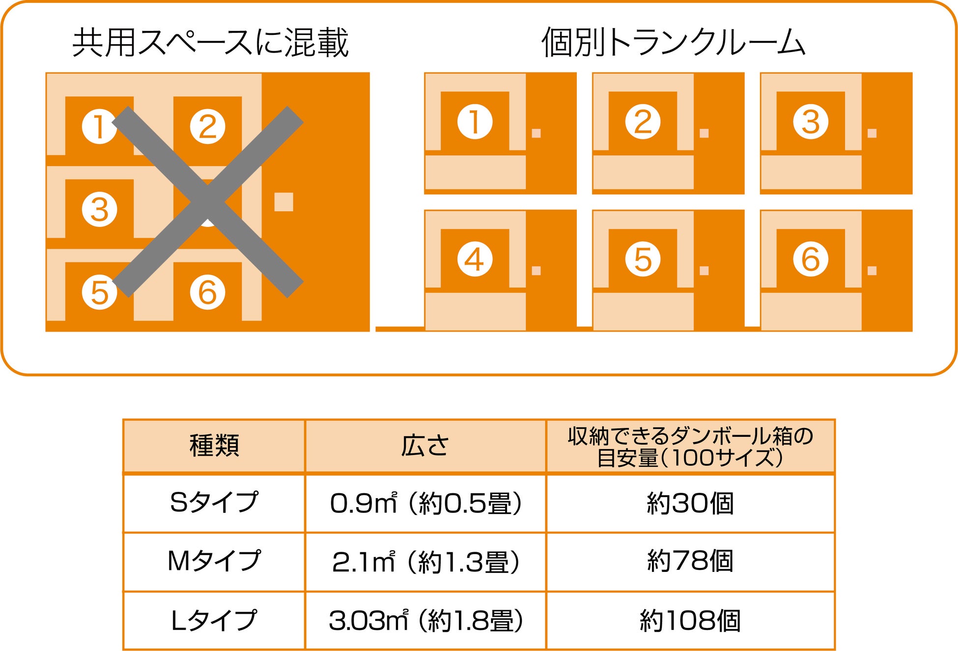また、トランクルームのサイズは3タイプからお選びいただけますので、荷物量やご予算に合わせてお選びいただけます。