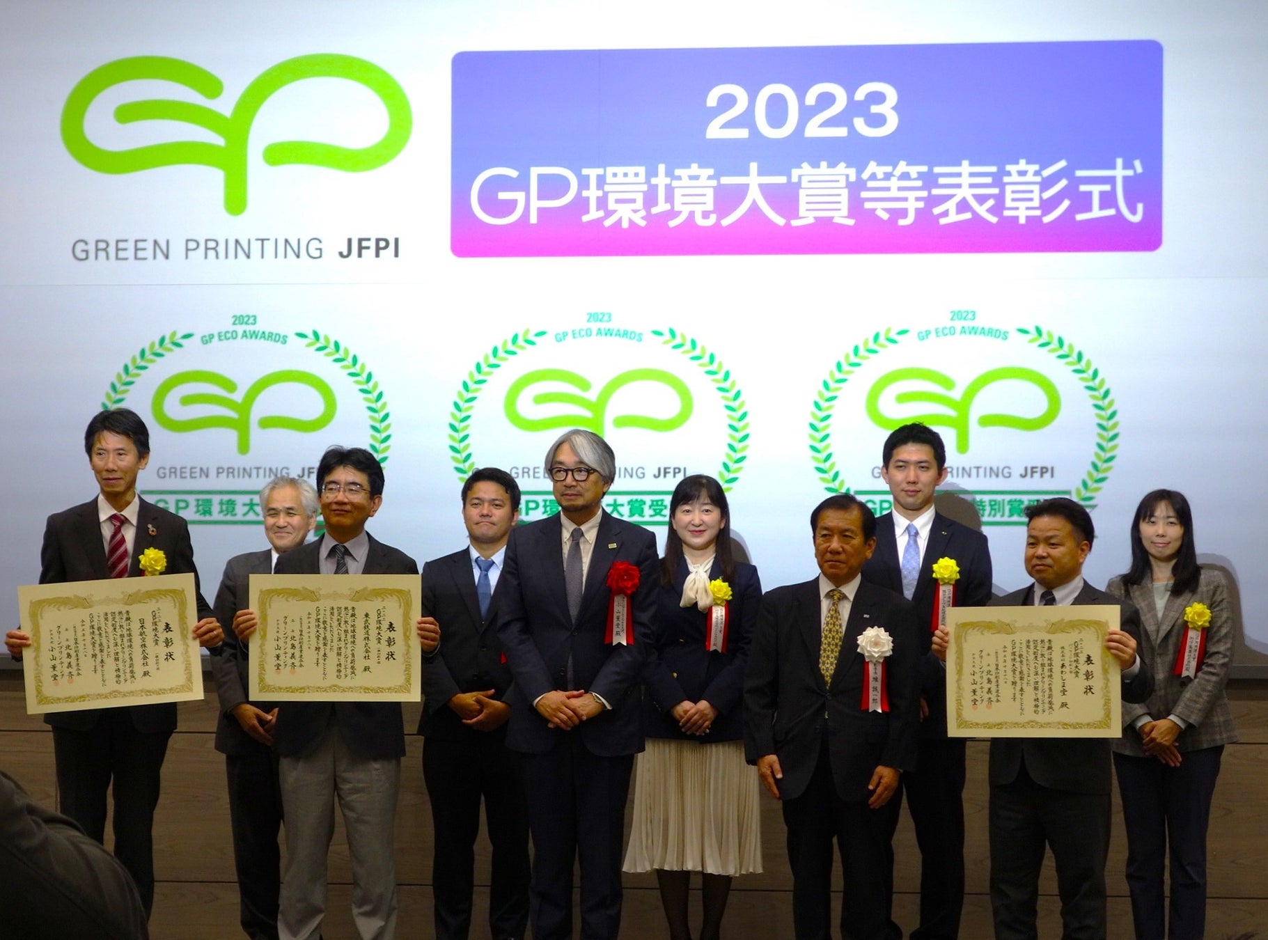 「GP環境大賞」は、印刷業界が地球環境への負荷低減に取り組むために創設したGP認定制度に対して、深く理解し積極的に活用している企業や団体に贈られるものです。「2023GP環境大賞」は、2022年度(2022年4月1日から2023年3月31日まで)にGPマーク※を表示した印刷製品をより多く発注した企業・団体が表彰されました。