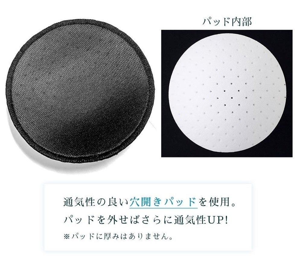 通気性の良い穴開きパッドを使用。パッドを外せばさらに通気性UP。