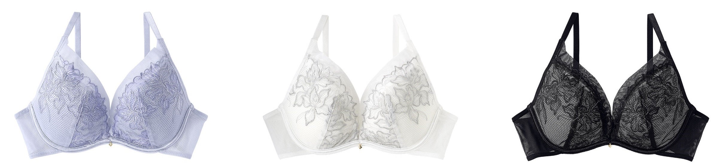 ソフトワイヤー使用で楽に盛れるaimerfeel楽ブラ(R) シリーズの夏ブラ「エアリークール」からユリのデザインのレースをあしらったブラジャーが登場。こちらのブラジャーはカップ裏に汗や水分を吸水して素早く乾かし、