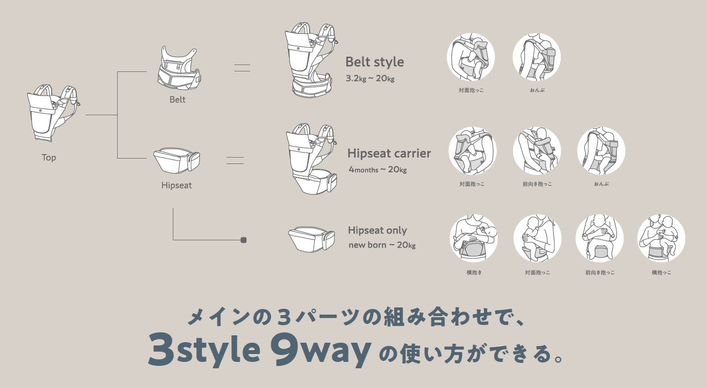 ■BABY&Meは買い替え不要のオールインワンタイプのヒップシートキャリア